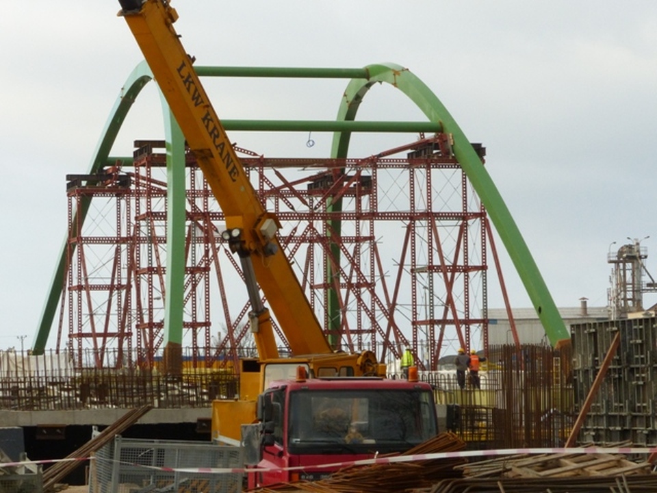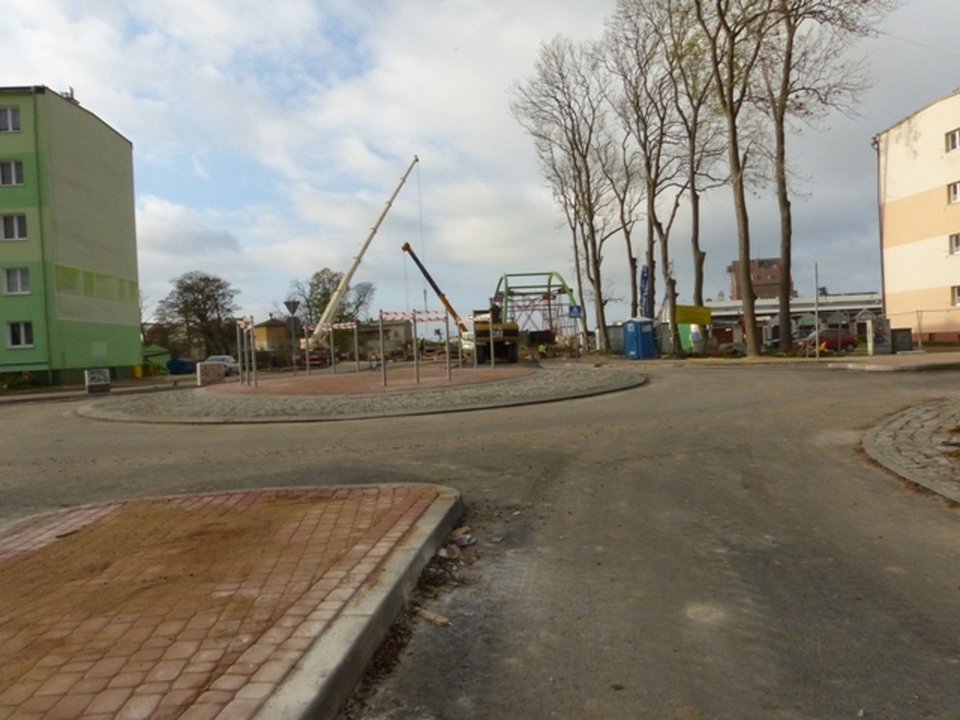 Jak nas informuje kierownik budowy Adam Pyciński pozostało jeszcze położenie wierzchniej warstwy asfaltu oraz oznakowanie pionowe i poziome. Potrwa to jeszcze kilka dni. Z nowego ronda roztacza się w kierunku ulicy Portowej budujący widok na łuki i konstrukcję pomocniczą do montażu mostu na rzece Wieprzy.