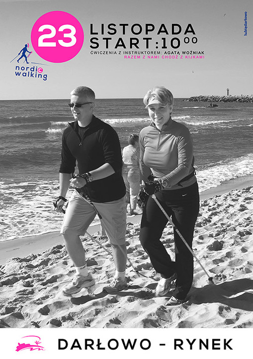 Dnia 23 listopada o godz. 10.00 na Placu Kościuszki (rynek w Darłowie) odbędzie się spotkanie z instruktorką Nordic Walking, nauczycielką wychowania fizycznego w Miejskim Gimnazjum - Panią Agatą Woźniak. Celem spotkania jest zachęcenie mieszkańców Darłowa do zbiorowej aktywności fizycznej oraz skorygowanie błędów, jakie nieświadomie wykonują amatorzy. Chętni do nauki przynoszą ze sobą kijki. W tym samym czasie, jak co tydzień ruszy już IV Darłowski Bieg Śniadaniowy. Zapraszamy dzieci, młodzież i osoby dorosłe. Bądź aktywny jesienią.