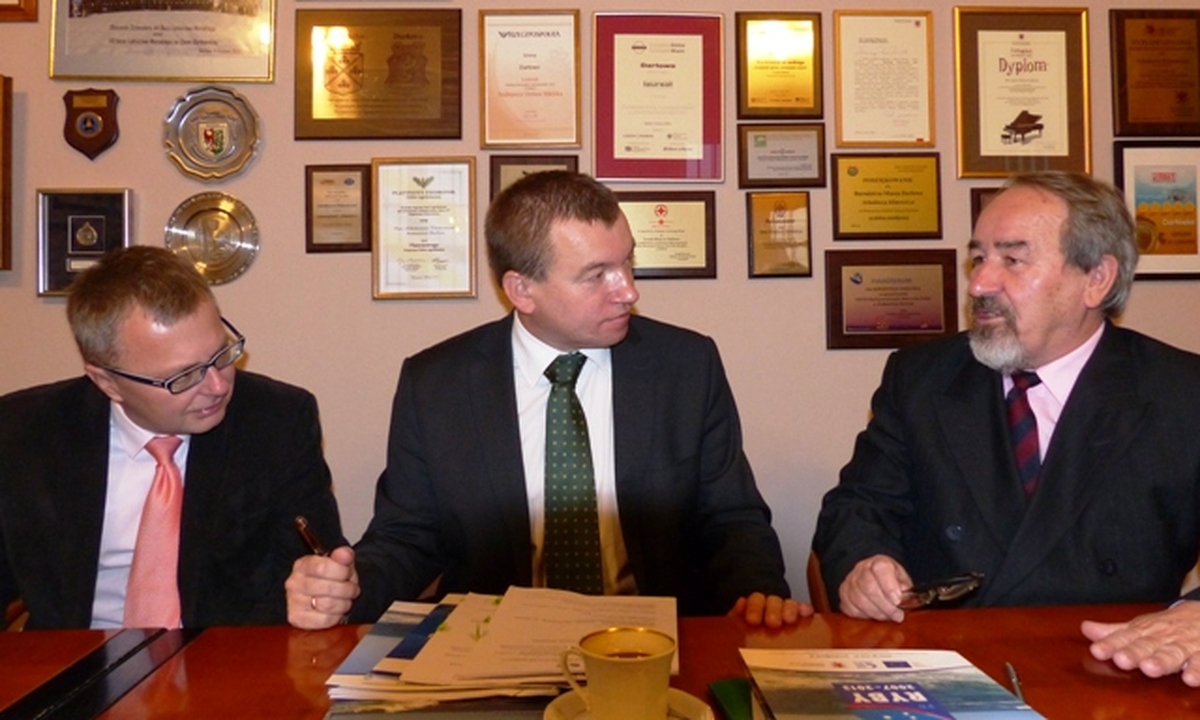 Klub Kolarski Ziemia Darłowska i Towarzystwo Przyjaciół Ziemi Darłowskiej 5 grudnia w darłowskim ratuszu podpisali z członkiem zarządu województwa zachodniopomorskiego Jarosławem Rzepą umowy na realizację projektów w ramach Programu Operacyjnego PO  RYBY na lata 2007-2013.