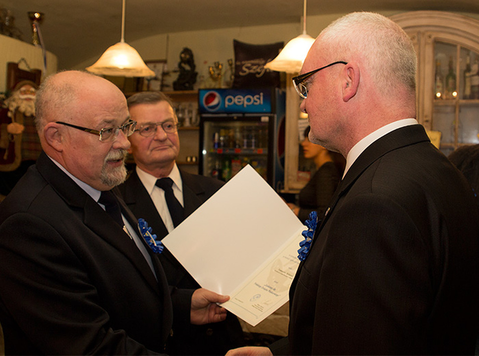 Również w sobotę 14 grudnia w restauracji Karczma Rzymska w Darłowie odbyło się świąteczne spotkanie wędkarzy i przyjaciół. Podczas niego Burmistrz Darłowa - Arkadiusz Klimowicz, przekazał symboliczny prezent prezesowi Zarządu Głównego Polskiego Związku Wędkarskiego - Dionizemu Ziemieckiemu. Z jego rak natomiast odebrał odznakę „Zasłużony dla Polskiego Związku Wędkarskiego", którą Zarząd Główny przyznał w uznaniu zasług wniesionych  w rozwój i upowszechnianie wędkarstwa. Takim wyróżnieniem odznaczono również dyrektora Urzędu Morskiego w Słupsku - Tomasza Bobina. Nagrodą specjalną natomiast Polski Związek Wędkarski postanowił wyróżnić Pawła Paćkowskiego, wędkarza z darłowskiego koła - doceniając jego trud i ogromne zaangażowanie jakie wnosi w popularyzację wędkarstwa polskiego.
