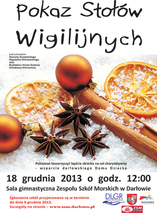 Już jutro, 18 grudnia na sali gimnastycznej Zespołu Szkół Morskich - wielkie przedświąteczne wydarzenie w wykonaniu dziewcząt i chłopców w marynarskich mundurach. Pokaz stołów wigilijnych przygotowany przez: mechaników, nawigatorów, logistyków i hotelarzy - szykuje się ciekawe widowisko. Który okaże się najciekawszy, który nakryty zgodnie z zasadami, przy którym zasiadłby do wigilijnej wieczerzy sam Marc O'Polo? Przyjdź, zobacz, skosztuj. Zapraszamy na pokaz stołów wigilijnych. Zespół Szkół Morskich - Darłowo, ul. Szpitalna 1 - godz. 12:00. Wstęp wolny.
