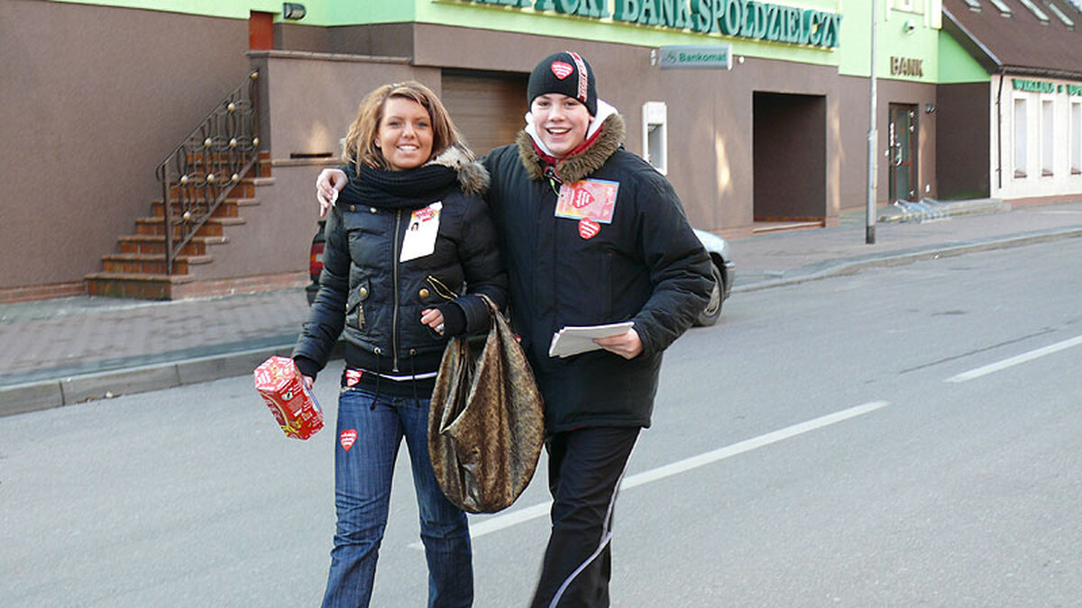 W tym roku kwestę na Wielką Orkiestrę Świątecznej Pomocy w Darłowie zorganizowały trzy sztaby WOŚP. Dwa jak zwykle miały swą siedzibę w Miejskim Gimnazjum. Kierowali nimi Janusz i Edyta Resil z Zespołu Szkół im. S. Żeromskiego oraz Mariusz Pokomeda i Artur Hamerling z Miejskiego Gimnazjum im. S. Dulewicza. Trzecim utworzonym po raz pierwszy w Zespole Szkół w Darłówku kierował Mieczysław Czapla. Wszystkie sztaby korzystały ze 180 wolontariuszy. Nosili oni identyfikatory ze zdjęciem i serdecznym uśmiechem zachęcali przechodniów do wrzucania datków do puszek. W zamian przekazywali podziękowanie w postaci czerwonego serduszka. Od rana kwestowano w Darłowie i Darłówku. Scenę na której odbywały się występy i przeprowadzano licytacje rozstawiono na rynku przy fontannie z Rybakiem. Kolejno występowali na niej: Chór żeński z Miejskiego Gimnazjum pod kierunkiem Krystyny Leśniewskiej, śpiewał i grał na gitarze Dariusz Kos, zespół rockowy z ZSM „Great Mint”, grupa rockowa z LO - „UZURPA”, Hot – Dance i Andrzej Sztaba. Okazale wypadło „Światełko do nieba”, a właściwie pokaz fajerwerków. Prześlicznie wyglądało gorejące serduszko wysyłające świecące promienie. O godz. 20 wystąpił nagrodzony przez burmistrza zespół „Świadomość” grający muzykę reggae. Oklaskiwało go kilkuset fanów. Z licytacji fantów i gadżetów takich jak np.: koszulki, serduszka, plecaki, kubki, kalendarze przesłane ze sztabu WÓŚP oraz darów mieszkańców jak np.: hełm, amerykański kombinezon wojskowy, statek z ości, koło sterowe, obrazy olejne i malowane na szkle zebrano kwotę 2000 zł. Furorę zrobiło 521 serduszek uszytych na XVI Finał WOŚP przez dzieci z Zespołu Szkół w Darłówku, które były rozchwytywane w czasie licytacji. Nie można jeszcze dokładnie określić wielkości zebranych kwot przez poszczególne sztaby, ponieważ pieniądze liczone są przez bank. Ze zrobionego szacunku wynika jednak, że darłowianie byli hojniejsi aniżeli rok temu, kiedy to zebrano 14 tys. zł. Podliczył się jedynie sztab Mieczysława Czapli, który zebrał z kwesty i licytacji ponad 7 tys. zł. Zebrane pieniądze będą przeznaczone na zakup aparatury niezbędnej do leczenia dzieci ze schorzeniami laryngologicznymi.LW
