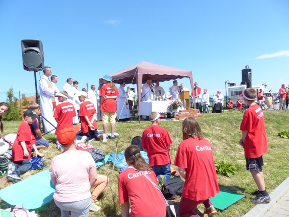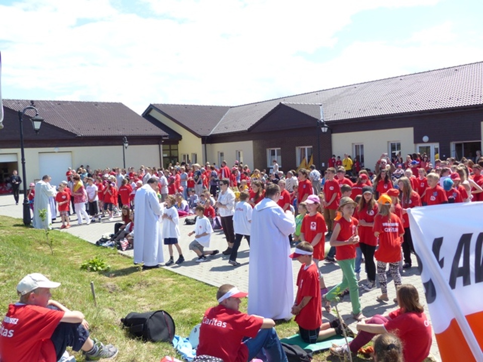 W piątek 6 czerwca 2014 na terenach rekreacyjnych Domu Opiekuńczo – Hospicyjnego w Darłowie doszło do spotkania blisko tysiąca wolontariuszy ze Szkolnych Kół Caritas Diecezji Koszalińsko-Kołobrzeskiej. Organizator spotkania - Caritas naszej Diecezji - wybrał miejsce przy Hospicjum im. bpa Domina dlatego gdyż właśnie w pomoc w stworzeniu tej placówki Caritas, zaangażowali się wolontariusze ze Szkolnych Kół. Młodzież w wieku szkolnym i gimnazjalnym obejrzała wymierne efekty swoich działań na rzecz cierpiących i chorych, a zarazem usłyszała słowa podziękowania za swoją pracę od Biskupa Diecezji Koszalińsko-Kołobrzeskiej, Jego Ekscelencji Edwarda Dajczaka. Zaproszeni na spotkanie goście - wolontariusze, a wraz z nimi dyrektorzy szkół, w których działają Szkolne Koła Caritas z ich opiekunami oraz przedstawiciele władz samorządowych, wzięli udział we wspólnej uroczystej mszy św. Celebrował ją biskup Edward Dajczak w asyście kilkunastu księży. Dziękował on przybyłym uczniom i opiekunom za zaangażowanie w dzieło budowy tak potrzebnego Hospicjum. Dziękował również darłowskim władzom samorządowym na czele z burmistrzem Darłowa i lokalnej społeczności, które wspierało budowę i wspiera działalność tej placówki opiekuńczej. Kilka SKC, jak np. koło ze Szkoły Podstawowej nr 8 w Kołobrzegu, które zdobyło trzecie miejsce w Ogólnopolskim Konkursie „Mój szkolny kolega z misji” otrzymało od biskupa specjalne podziękowania i podarunki. Następnie z flagami i balonami wolontariusze z SKC przemaszerowali ulicami Darłowa na stadion. Tam odbywały się koncerty zespołów muzycznych, konkursy i korzystano z kuchni polowej. Na zakończenie spotkania darłowscy przewodnicy oprowadzali wolontariuszy po Królewskim Mieście Darłowie.