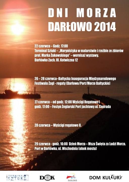 - 21.06 (sobota) - pełen ciepła ogniska rodzinnego Festyn Letni pod patronatem Starosty Sławieńskiego Wojciecha Wiśniowskiego oraz Burmistrza Miasta Darłowo Arkadiusza Klimowicza. Na płycie stadionu miejskiego czeka min.: turniej piłkarski Powiatowej Straży Pożarnej, zumba, pokaz tańca Break Dance (Adidas Crew), mini przegląd zespołów