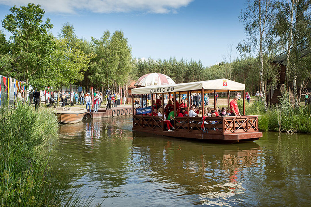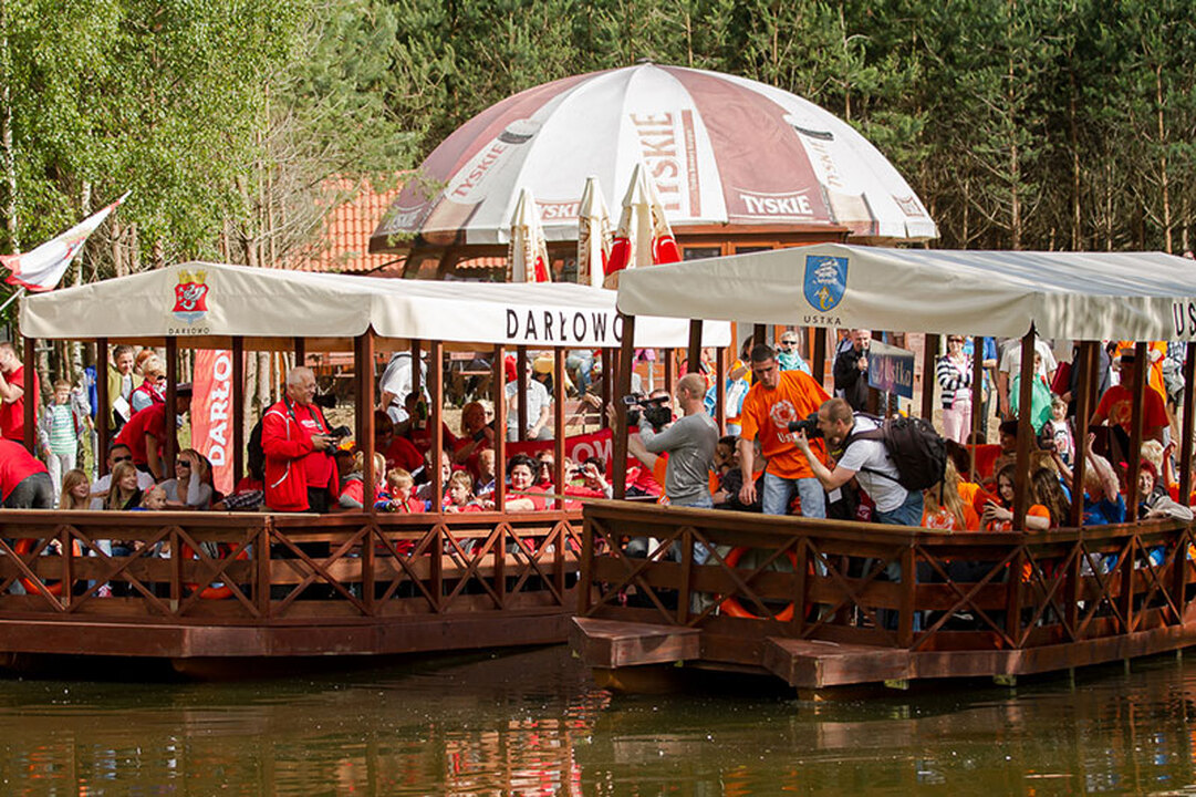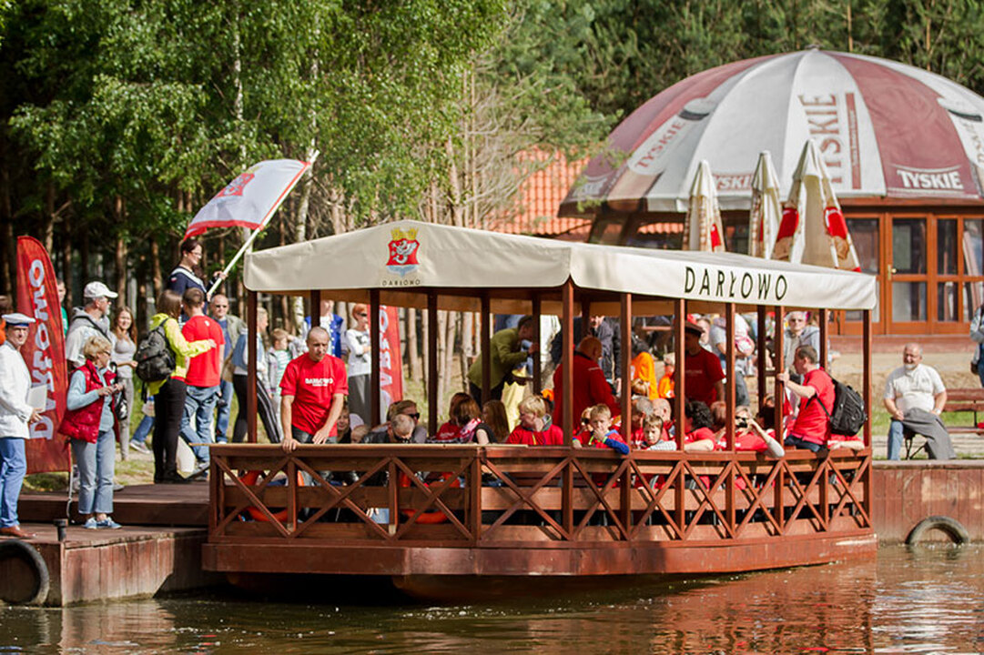 Na pomoście, przy którym na co dzień cumować będą jednostki odkryto pamiątkowe tablice miast: Darłowa i Ustki. Turyści, którzy będą zwiedzać, nową cześć Zoo Charlotta - bogatszego o takie zwierzęta jak m.in. strusie afrykańskie, emu, kangury, zebry itp. na początku rejsu zostaną powitani na pokładzie jednostek, po czym wysłuchają opowieści o mieście na pokładzie łódki, której zasiadają. W krótkim tekście promującym miasta usłyszą m.in. o tym dlaczego warto wybrać się do Darłowa i że jest to miasto królewskie a także o tym jaki pakiet atrakcji czeka na nich w Darłowie oddalonym o jedyne trzy kwadranse drogi od Magicznej Doliny Charlotty.