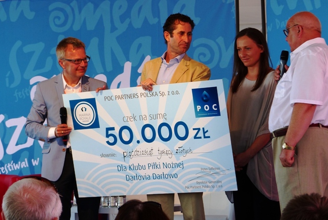 Pomiędzy spotkaniami belgijska spółka deweloperska POC Parntners przekazała Klubowi piłki nożnej Darłovia czek na 50 tys. złj