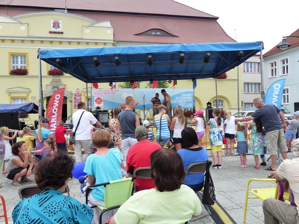 Na scenie przed ratuszem miały miejsce koncerty i występy solistów oraz licytacje darów przekazanych przez firmy i osoby prywatne. W trakcie festynu wystąpili: zwycięzcy konkursów na Młode Talenty Wokalne, Magik Julian oraz Zespoły: polsko- romski „Marianna i jej Cyganie” z Koszalina i folklorystyczny zespół „Złoty Łan” z Wiekowic. Duże zainteresowanie wzbudził koncert niewidomej wokalistki z Ustki Patrycji Baczyńskiej (finalistki Must Be The Music – tylko Muzyka), która swoim głęboko grzmiącym głosem wzbudziła podziw widzów. Kulminacyjnym występem w części artystycznej festynu była gra i śpiew zespołu samorządowców z Polanowa - "5S", który świetnie rozbawił publiczność. W festynie udział wzięli m.in. wolontariusze z darłowskiego oddziału Związku Emerytów  Rencistów i Inwalidów na czele z Danutą Puczyńską oraz szkół, także pracownice hospicjum. W loterii fantowej wszystkie kupione losy były nagradzane drobnymi podarkami i gadżetami. Głównymi nagrodami były: rower, toster, patelnia do grillowania, rejs jachtem motorowym „Nicola”.  Największe sumy uzyskano z licytacji: czterech lotniczych fotogramów Darłowa -450 zł, piłki z autografami klubu Zawisza Bydgoszcz - 350 zł, pluszowego misia podarowanego przez burmistrza Darłowa -350 zł. Powodzenie miały super smaczne jabłka, które starosta powiatu i przedstawiciele Darłowskiej Lokalnej Organizacji Turystycznej rozdawali wszystkim przybyłym na festyn w zamian za drobne datki na darłowskie hospicjum. Dochód z festynu zostanie przeznaczony zostanie na potrzeby hospicjum domowego, m.in. Samochód niezbędny do funkcjonowania hospicjum. Hospicjum domowe  zostało uruchomione od 1 lipca 2014. Imprezę swoją obecnością zaszczycili: Wojciech Wiśniowski sławieński starosta i jego zastępca Andrzej Protasewicz, Arkadiusz Klimowicz – burmistrz Darłowa i jego zastępca Elżbieta Karlińska z rodzinami, radni Rady Miejskiej, księża, mieszkańcy i turyści. Na grillu pieczono kiełbaski i pstrągi, obok częstowano zupą, ciastami, lemoniadą, chlebem ze smalcem i ogórkiem w zamian za datki do puszek. Na festynie można było kupić miody naturalne, wyroby artystyczne mieszkańców hospicjum. Dzieci szeroko korzystały z malowania twarzy, udziału w konkursie plastycznym i z pompowanej zjeżdżalni. Do późnych godzin nocnych bawiono się przy muzyce.                                                                                                                                                          Patronat Honorowy nad festynem objęli: Burmistrz Miasta Darłowo Arkadiusz Klimowicz, Starosta Sławieński Wojciech Wiśniowski, Bp. Diecezji Koszalińsko – Kołobrzeskiej Edward Dajczak, Dyrektor Caritas Diecezji Koszalińsko – Kołobrzeskiej.