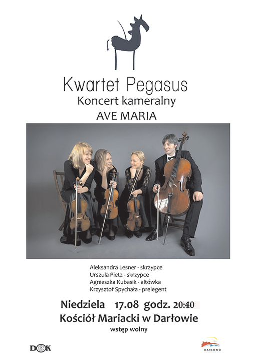 Darłowski Ośrodek Kultury im. Leopolda Tyrmanda w Darłowie ma przyjemność zaprosić na kameralny koncert w wykonaniu Kwartetu PEGASUS w składzie: