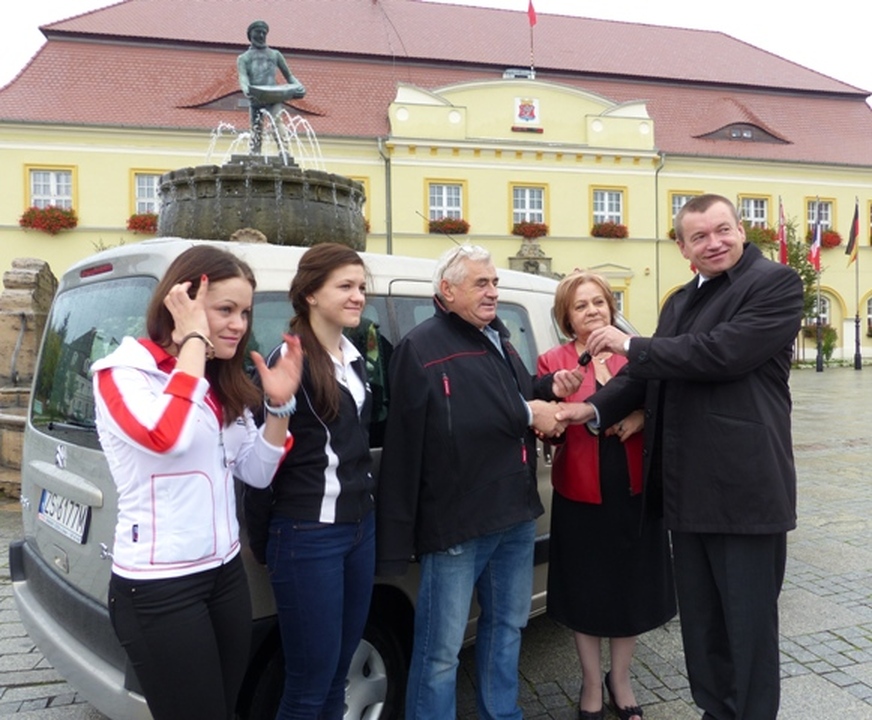 Członek Zarządu Województwa Zachodniopomorskiego Jarosław Rzepa i wiceburmistrz Darłowa Elżbieta Karlińska przekazali kluczyki wraz z samochodem prezesowi Klubu Kolarskiego Ziemia Darłowska Eugeniuszowi Adamowowi. Jest to wielce potrzebny środek transportu dla kolarek często wyjeżdżających na zawody sportowe. W uroczystości przekazania samochodu oprócz prezesa Klubu Kolarskiego BCM Nowatex Ziemia Darłowska udział wzięli trener Marcin Adamów i zawodniczki siostry Daria i Wiktoria Pikulik. W imieniu wszystkich prezes klubu gorąco dziękował za użyteczny dar i przekazał kluczyki trenerowi.