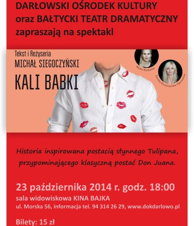 We czwartek o godz. 18 w darłowskim Kinie "Bajka" wystąpią aktorzy z Bałtyckiego Teatru Dramatycznego, w spektaklu pt. "Kali Babki”.