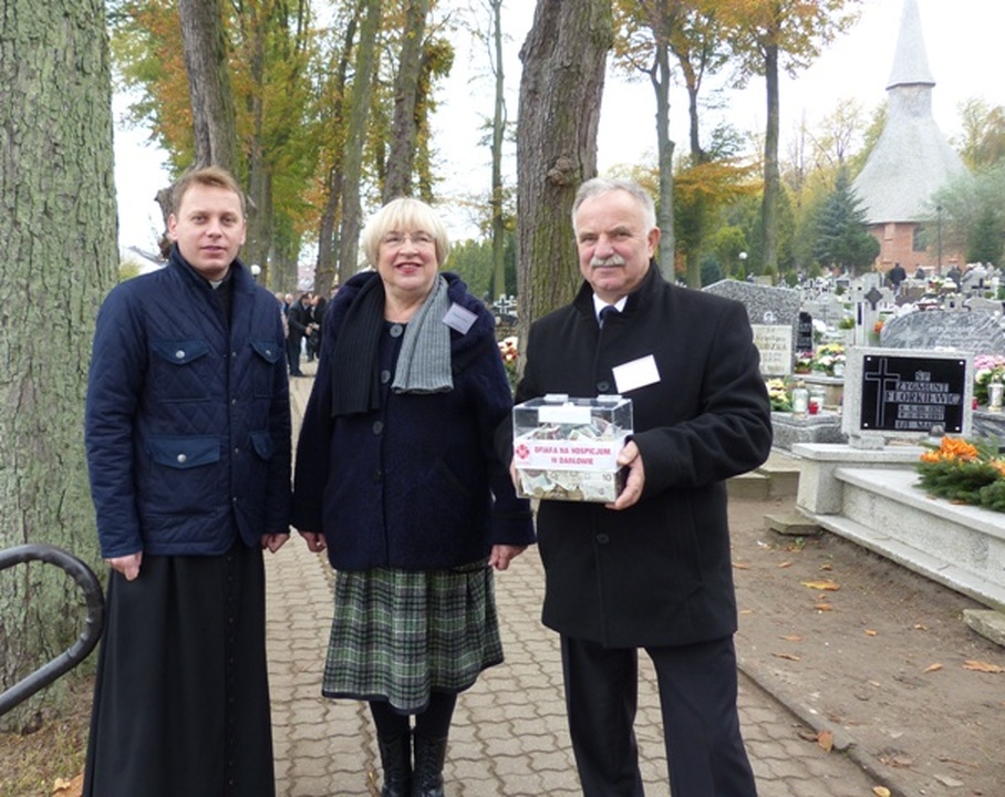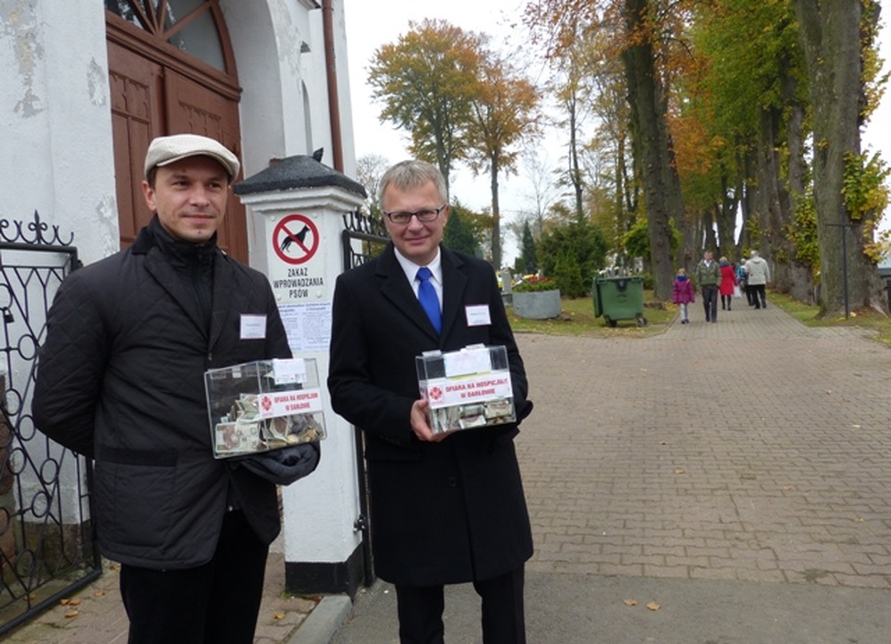 W dniu Wszystkich Świętych 1 listopada przy trzech bramach prowadzących na cmentarz przy Św. Gertrudzie, podobnie jak w latach poprzednich, kwestowali m.in. starosta sławieński – Wojciech Wiśniowski, burmistrz miasta Darłowa – Arkadiusz Klimowicz, zastępca burmistrza – Elżbieta Karlińska, sekretarz UM – Krzysztof Walków, ks. Krzysztof Sendecki, przewodniczący darłowskiej Rady Miejskiej Zbigniew Grosz, radni Rady Miejskiej i inni. Zebrano do puszek 16280 złotych. Jest to znacznie więcej aniżeli w roku ubiegłym. Datki zostaną przeznaczone na Dom Hospicyjno – Opiekuńczy Caritas w Darłowie im. Biskupa Czesława Domina, mającego swoja siedzibę w Darłowie przy ulicy Wiejskiej 9. Organizatorzy zbiórki dziękują darłowianom za hojność i zaangażowanie w zbiórkę.