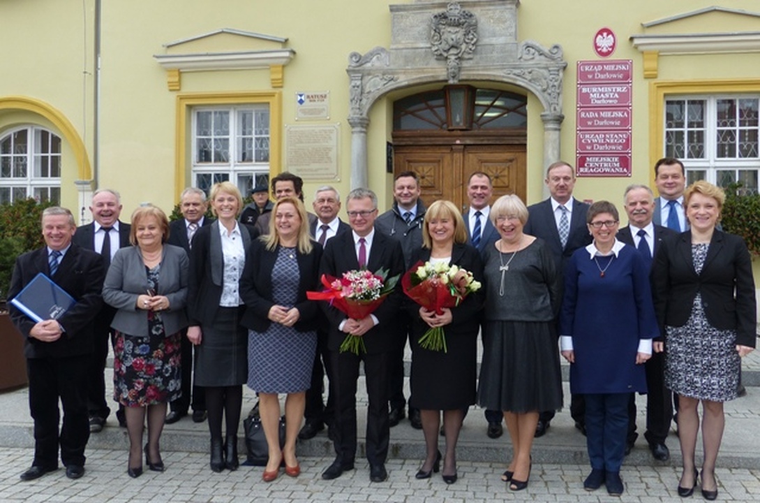 W składzie nowej Rady Miejskiej znajduje się 11 radnych z Komitetu Wyborczego Wyborców Arkadiusza Klimowicza: Dudziński Roman, Grosz Zbigniew, Herdzik Andrzej, Maciąg Jerzy, Madalińska-Marciniak Ewa, Podgórska Dorota, Potomska Renata, Różańska Krystyna, Sokolińska Krystyna, Woźniak Czesław, Ziółkowski Edward. Z Komitetu Wyborczego Wyborców „Twoje Darłowo” radnymi zostali: Breszka Paweł, Masłowski Piotr, a Komitetu Wyborczego Wyborców „Aktywne Darłowo” weszli – Basandowska Ewa i Gorgol Robert.                                                                                                                        Włodarz Darłowa serdecznie podziękował    mieszkańcom Królewskiego Miasta za wybór i zaufanie. Osobno podziękował Zbigniewowi Groszowi za współpracę i przewodniczenie radzie przez 11 lat oraz Bożenie Magier, która została przewodniczącą komisji zdrowia w radzie powiatu sławieńskiego, a także byłym radnym: Krzysztofowi Cybulskiemu, Bogdanowi Sajko i Marianowi Wysockiemu. W przerwie obrad Arkadiuszowi Klimowiczowi złożyli gratulacje starosta sławieński Wojciech Wiśniowski i nowy wójt gminy Darłowo Radosław Głażewski.                                                                                                  Kandydaturę Krystyny Sokolińskiej na przewodniczącą  RM zgłosił ustępujący przewodniczący Zbigniew Grosz, uzasadniając, że ma ona wielkie doświadczenie samorządowe i cieszy się sympatią wielu mieszkańców. Dodajmy, że Krystyna Sokolińska jest dyrektorem Powiatowego Urzędu Pracy i w wyborach zdobyła aż 59% poparcia w swoim okręgu wyborczym. To najlepszy wynik procentowy pośród wszystkich radnych. W tajnym głosowaniu przewodniczącą Rady Miejskiej wybrano   Krystynę Sokolińską, która radną została już po raz czwarty. Otrzymała 13 głosów a jej kontrkandydat Paweł Breszka 2 głosy. Kandydaturę Pawła Breszki na przewodniczącego rady zgłosił radny Piotr Masłowski z Komitetu Wyborczego „Twoje Darłowo”. Uzasadnił, że Paweł Breszka jest radnym z Darłówka i był przewodniczącym zarządu osiedla w tej nadmorskiej dzielnicy Darłowa. Wiceprzewodniczącym rady miejskiej wybrano Czesława Woźniaka - 10. głosami. Ewa Basandowka w głosowaniu na wiceprzewodniczącą otrzymała 5 głosów W końcowej części obrad głos zabrał Arkadiusz Klimowicz, który wygłosił krótkie ekspose. Burmistrz na najbliższe cztery lata zgodnie z programem wyborczym zapowiedział, że wspólnie z powiatem i gminą Darłowo będzie dążył do poszerzenia dostępności do usług zdrowotnych do lekarzy specjalistów, w tym również poprzez utworzenie w Darłowie oddziału szpitalnego, ponieważ służba zdrowia będzie jednym z priorytetów na nową kadencję. W najbliższych latach będzie się kończyć era wielkich inwestycji komunalnych, które były niezbędne dla rozwoju Darłowa. Teraz nadchodzi czas mniejszych inwestycji takiego typu jak: place zabaw, małe boiska, podwórka, urządzenia rekreacyjne, czy osiedlowe drogi i chodniki. Burmistrz Darłowa zapowiedział, że będzie proponował radzie realizację przedsięwzięć, które spowodują, że lepiej będzie się żyło mieszkańcom, a miasto będzie nie tylko przyjazne dla turystów i inwestorów, ale przede wszystkim dla darłowiaków.  Dzięki nowym inwestycjom Darłowo będzie piękne i wygodne nie tylko od frontu, ale również od zaplecza. Jednym z istotnych kierunków działania samorządu będzie ułatwianie życia osobom starszym i niepełnosprawnym oraz likwidacja barier architektonicznych. Burmistrz podkreślił, że zostaną, poszerzone konsultacje społeczne, reaktywowanie zostaną zarządy osiedlowe, a także większa pula pieniędzy będzie przeznaczona na Budżet Obywatelski. Ponadto planuje się powołanie Uniwersytetu Trzeciego Wieku. Poprawie ulegnie także infrastruktura potrzebna dzieciom i młodzieży. Dalszemu rozszerzeniu ulegnie współpraca z organizacjami pozarządowymi, w tym również z klubami sportowymi.                                Na wniosek przewodniczącej RM Krystyny Sokolińskiej, która jest zwolennikiem popołudniowych sesji, aby w nich szerzej mogli uczestniczyć mieszkańcy przerwano obrady do dnia 3 grudnia do godz. 17. W dalszym toku sesji RM zostaną wybrane składy poszczególnych Komisji Rady i ich przewodniczący. Przy okazji poinformowała biorących udział w sesji, że na jej ręce wpłynęło pismo o utworzeniu Klubu Radnych „Dobre Darłowo”, którego przewodniczącym jest Jerzy Maciąg.  W skład klubu weszło 11 radnych wybranych z Komitetu Wyborczego Arkadiusza Klimowicza