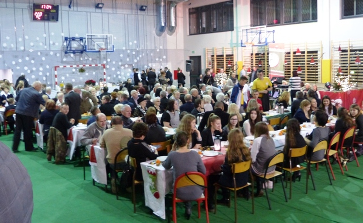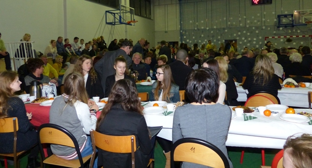 W miniony poniedziałek 22 grudnia w sali sportowej Zespołu Szkół im. S. Żeromskiego odbyła się ogólnomiejska wigilia zorganizowana przez burmistrza Darłowa Arkadiusza Klimowicza.