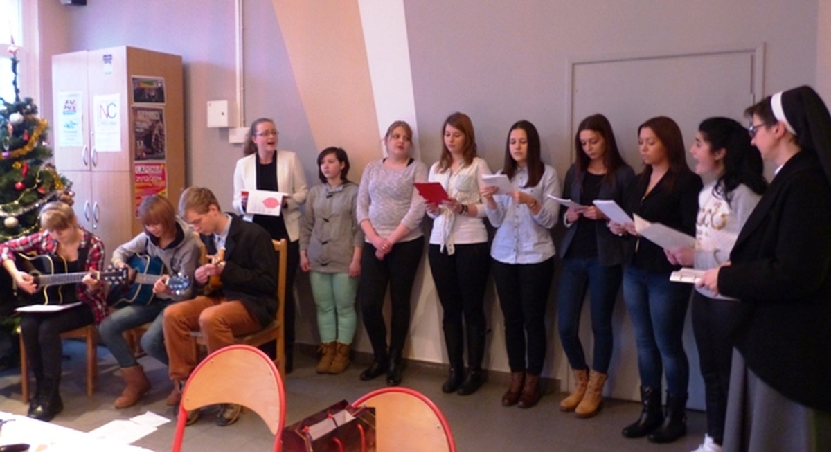 W gościnnej świetlicy Zespołu Szkół im. S. Żeromskiego 9 stycznia Pionierzy Ziemi Darłowskiej dzielili się opłatkiem.