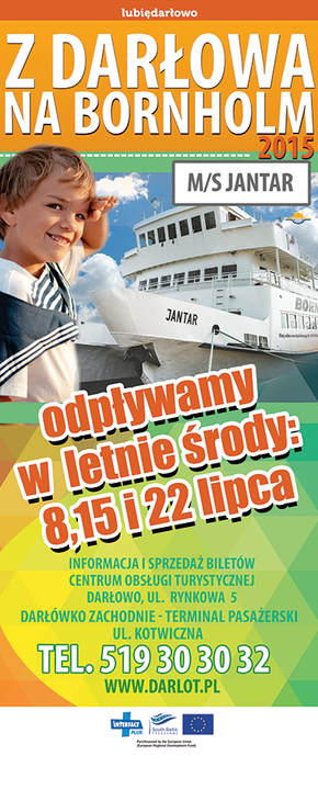 Podobnie jak w latach ubiegłych, tak i w tym roku z portu w Darłowie będzie można odbyć morską podróż katamaranem JANTAR (KŻP) do Danii - a dokładnie na oddaloną o 55 mil morskich Wyspę Bornholm.