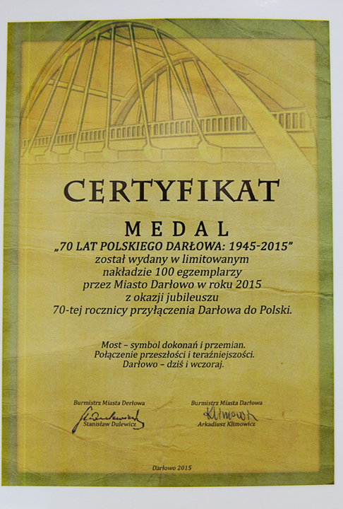 Podczas spotkania burmistrz Darłowa uhonorował członków Klubu Pionierów Ziemi Darłowskiej i proboszcza Parafii MB Częstochowskiej o Stanisława Piankowskiego specjalnie wybitym na okoliczność 70 Lat Polskiego Darłowa medalem. Jednocześnie wręczył specjalne certyfikaty. Spotkanie zakończyło się obiadem.