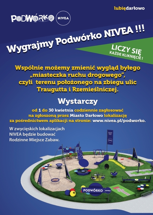 Miasto Darłowo zgłosiło swój udział w ogólnopolskim konkursie pn. "Podwórko Nivea", organizowanym przez NIVEA Polska Sp. z o.o. Do wygrania jest rewitalizacja placu położonego na zbiegu ulic Traugutta i Rzemieślniczej. Przez wiele lat teren ten pełnił funkcje miasteczka ruchu drogowego.