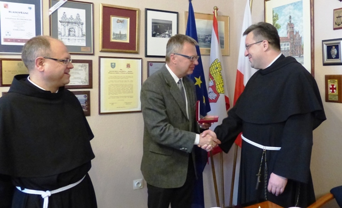 Z wizytą kurtuazyjną do Arkadiusza Klimowicza burmistrza Darłowa 4 maja 2015 przybył o. Jan Maciejowski - Prowincjał Braci Mniejszych Konwentualnych Prowincji Św. Maksymiliana w Gdańsku. Towarzyszył mu proboszcz Parafii Matki Bożej Częstochowskiej o Stanisław Piankowski. Franciszkanie od 70. lat dają posługę kapłańską mieszkańcom Darłowa. Z tej okazji burmistrz Darłowa wręczył Prowincjałowi medal siedemdziesięciolecia polskiego Darłowa.