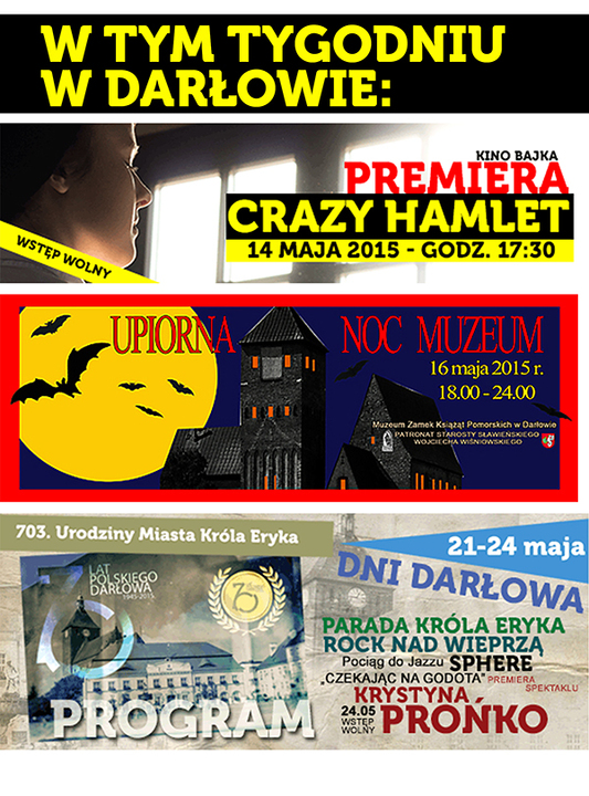 14 maja 2015 - Premiera filmu „Crazy Hamlet" - w wykonaniu uczniów Miejskiego Gimnazjum im. Stanisława Dulewicza w Darłowie.
