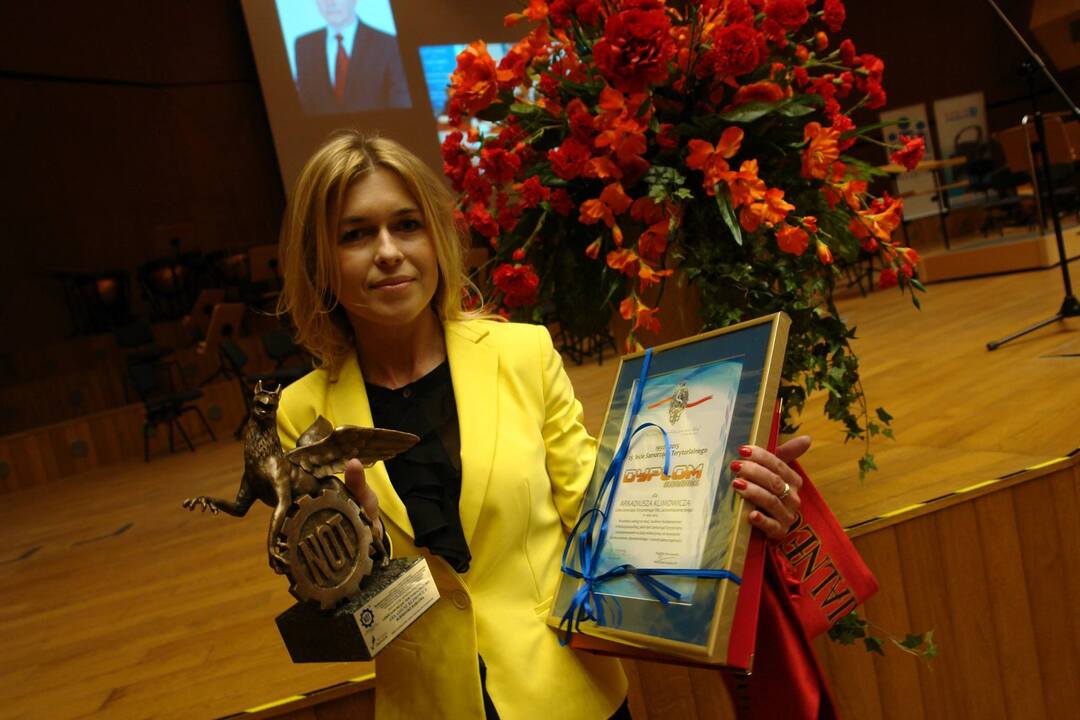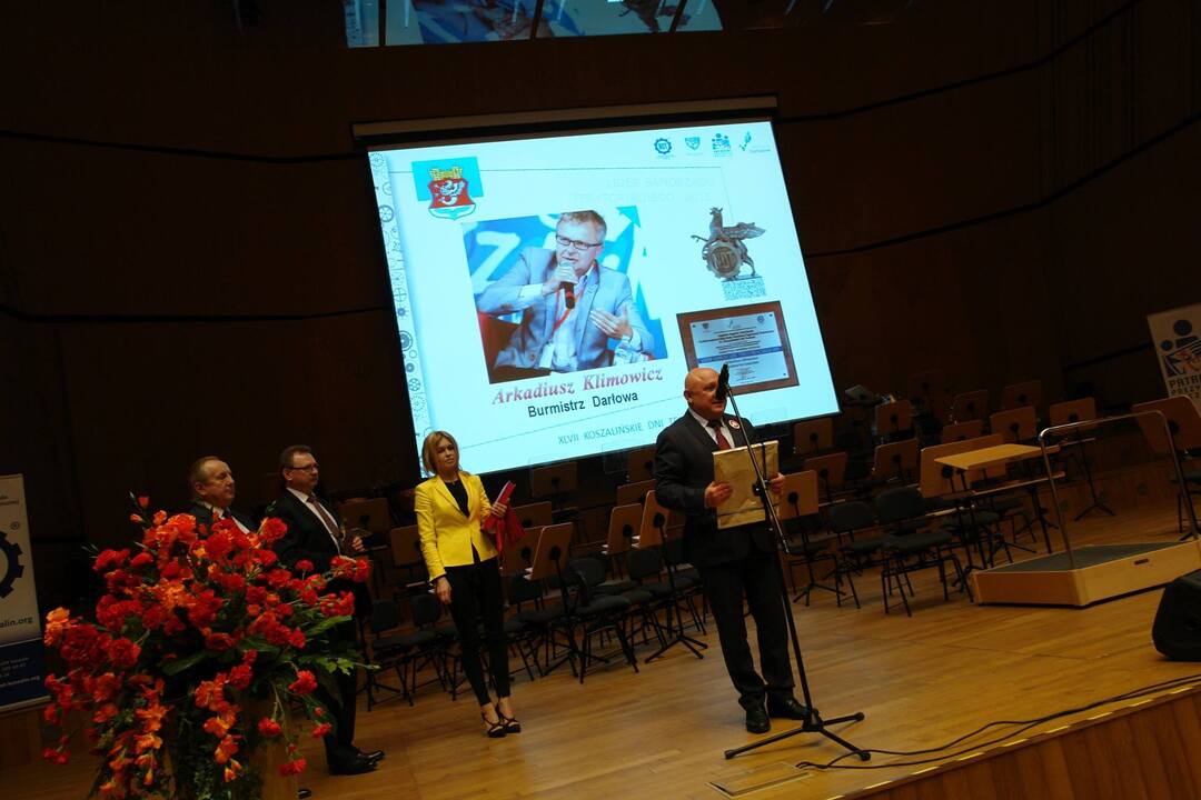 W jego imieniu, statuetkę odebrała jego żona, Joanna Klimowicz. To podwójne wyróżnienie, ponieważ, w tym samym czasie burmistrz odbierał wyróżnienie od pary prezydenckiej w Warszawie. Nagrodę wręczał prezes Banku Spółdzielczego w Darłowie i senator Piotr Zientarski. W uznaniu za zasługi na rzecz budowania fundamentów III Rzeczypospolitej, jakim jest Samorząd Terytorialny i podziękowaniem za duży wkład pracy w tworzenie społeczeństwa obywatelskiego i rozwój samorządności Arkadiusz Klimowicz - Burmistrz Darłowa odebrał także dyplom sygnowany przez samego marszałka senatu - Bogdana Borusewicza.