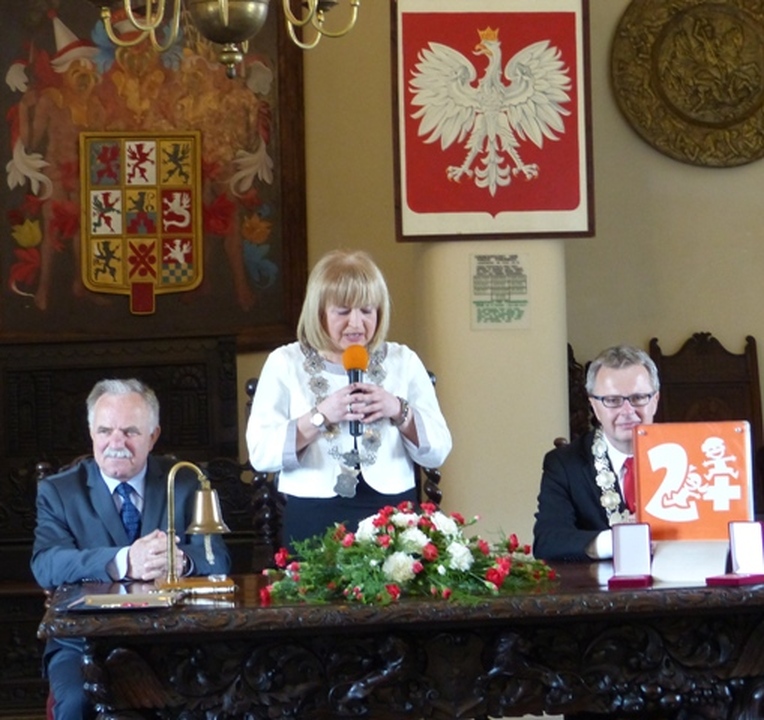 Z okazji siedemdziesięciolecia polskiego Darłowa i 703 rocznicy urodzin miasta na Zamku Książąt Pomorskich odbyła się uroczysta sesja Rady Miejskiej. Uczestniczyli w niej: Radni, Honorowy Obywatel miasta Darłowa i sekretarz stanu w ministerstwie środowiska Stanisław Gawłowski, starosta powiatu sławieńskiego Wojciech Wiśniowski, władze miasta, samorządowcy z ościennych gmin i powiatu sławieńskiego, duchowieństwo, równolatkowie polskiego Darłowa, zaproszeni goście i mieszkańcy Królewskiego Miasta Darłowa. Wszystkich serdecznie powitał burmistrz Darłowa Arkadiusz Klimowicz. Gospodarz Darłowa w specjalnym wystąpieniu przypomniał dzieje grodu nad Wieprzą i zainaugurował Dni Darłowa. Na początku sesji został odegrany na trąbce przez Zenona Lesnera hejnał Miejski. W imieniu Prezydenta RP Bronisława Komorowskiego Stanisław Gawłowski i Arkadiusz Klimowicz wręczyli Janinie Góreckiej Krzyż Kawalerski Orderu Odrodzenia Polski za działalność na rzecz demokracji w Polsce. Zaproszonym gościom, samorządowcom i muzealnikom wręczono Medale wybite na okoliczność 70 Lat Polskiego Darłowa. Równolatkowie polskiego Darłowa otrzymali pamiątkowe medale z herbem miasta i mostem symbolem przemian, wraz z certyfikatami. Następnie Jerzy Buziałkowski – dyrektor muzeum przedstawił nowe fakty z okresu siedemdziesięciolecia polskiego wystawiennictwa w zamku króla Eryka Pomorskiego i zaprosił uczestników sesji do obejrzenia wystawy Dirlov- Rügenwalde- Darłowo, która stała się największym wydarzeniem muzealnictwa na Pomorzu Zachodnim w roku 2014.