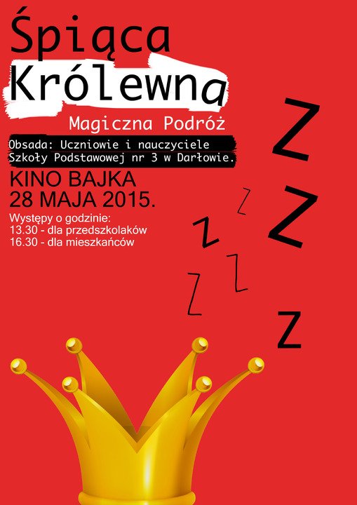 Społeczność Szkoły Podstawowej nr 3 w Darłowie ma przyjemność zaprosić na spektakl teatralny w wykonaniu nauczycieli i uczniów SP 3 pt.: „Śpiąca Królewna - Magiczna Podróż".