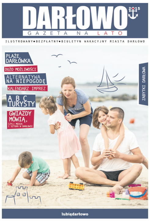 Informujemy, że Miasto Darłowo opracowało, wydało i wprowadziło na darłowski rynek ilustrowany, bezpłatny biuletyn wakacyjny Miasta Darłowo – gazetę na lato 2015. Dwudziestostronicową publikację nasi turyści mogą otrzymać bezpłatnie w Centrach Obsługi Turystycznej w Darłowie i Darłówku – żeglarze natomiast będą mogli ją pobrać w siedzibie Zarządu Portu Morskiego w Darłówku Wschodnim przy ul. Conrada 27. Na łamach wakacyjnej gazety opisano najważniejsze zabytki miasta, które warto zobaczyć podczas pobytu w królewskim mieście. Opisano trasy rowerowe i szlaki turystyczne, szereg możliwości turystycznych zarówno dla aktywnych, jak i tych spragnionych relaksu i odpoczynku. Publikacja zawiera ponadto wykaz miejsc godnych polecenia oraz alternatywy na niepogodę oraz wachlarz darłowskich imprez. Na ostatniej stronie zamieszczony został plan miasta opatrzony dodatkowo wykazem przydatnych nr telefonów. Polecamy uwadze.
