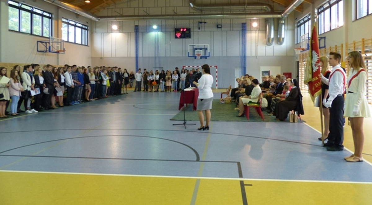W udekorowanej sali gimnastycznej podsumowania minionego roku szkolnego dokonała dyrektorka Małgorzata Świątkowska. Oprócz dobrych wyników w nauce wielu uczniów otrzymało nagrody i wyróżnienia za zwycięstwa i czołowe miejsca w różnych konkursach przedmiotowych, zawodach sportowych i wydarzeniach kulturalnych. Burmistrz Darłowa Arkadiusz Klimowicz wręczył najlepszym uczniom stypendia naukowe i sportowe i życzył najwspanialszych wakacji zarówno uczniom jak i kadrze pedagogicznej. Wychowawcy i opiekunowie uczniów biorących udział w licznych konkursach najlepszym wręczyli kilkadziesiąt dyplomów i nagród książkowych. Zadowoleni i uśmiechnięci uczniowie ze świadectwami z radością opuszczali mury Gimnazjum.