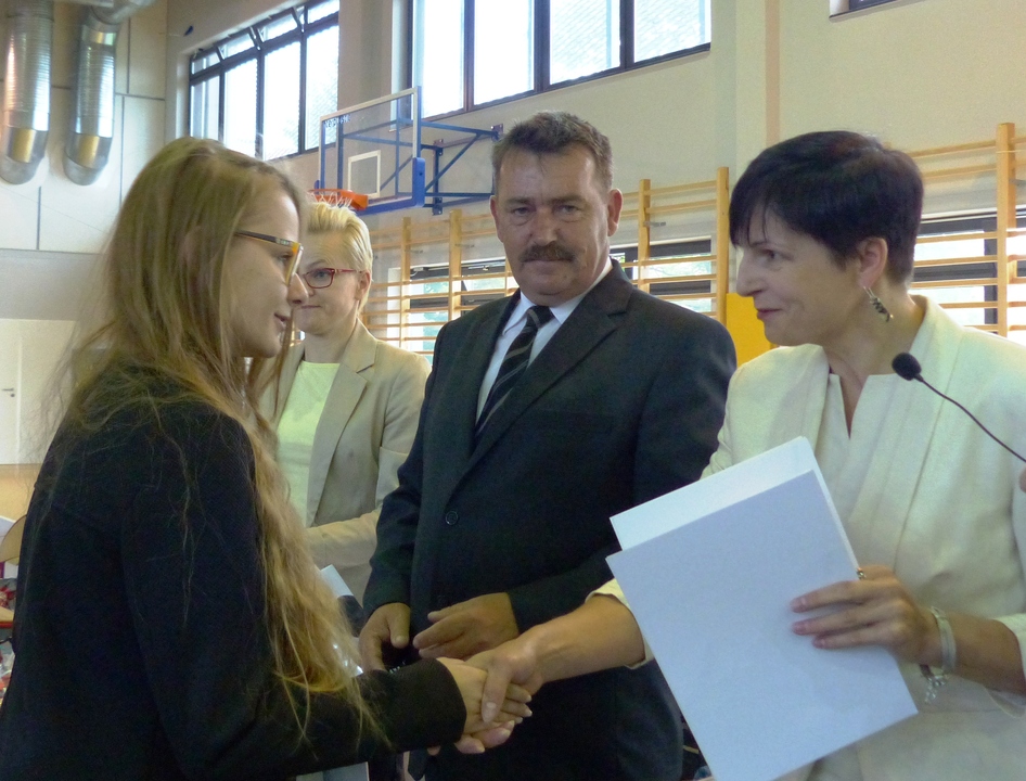 Uroczystość zakończenia roku szkolnego odbyła się w piątek 26 czerwca w sali sportowej. Wzięli w niej udział; uczniowie grono pedagogiczne i rodzice. Było ciepło, serdecznie i bardzo podniośle. Do udających się na wakacje uczniów przemówili dyrektor ZS Bogdan Herbeć i burmistrz Darłowa Arkadiusz Klimowicz. Najlepszym uczniom Ojciec miasta wręczył stypendia. Otrzymali je za naukę: Monika Trapik kl. II a, która otrzymuje również stypendium Premiera RP, Dominika Kuźniarka- kl. I a, Marta Balicka kl. I a i za wybitne osiągnięcia sportowe: Wiktoria Pikulik- kl-Ib Daria Pikulik- kl. II a, Klaudia Seremak kl. I b. Świadectwa z czerwonym paskiem i nagrody otrzymało sześciu uczniów klas drugich i tyle samo z klas pierwszych. Wszystkim gratulujemy i życzymy wspaniałych wakacji.