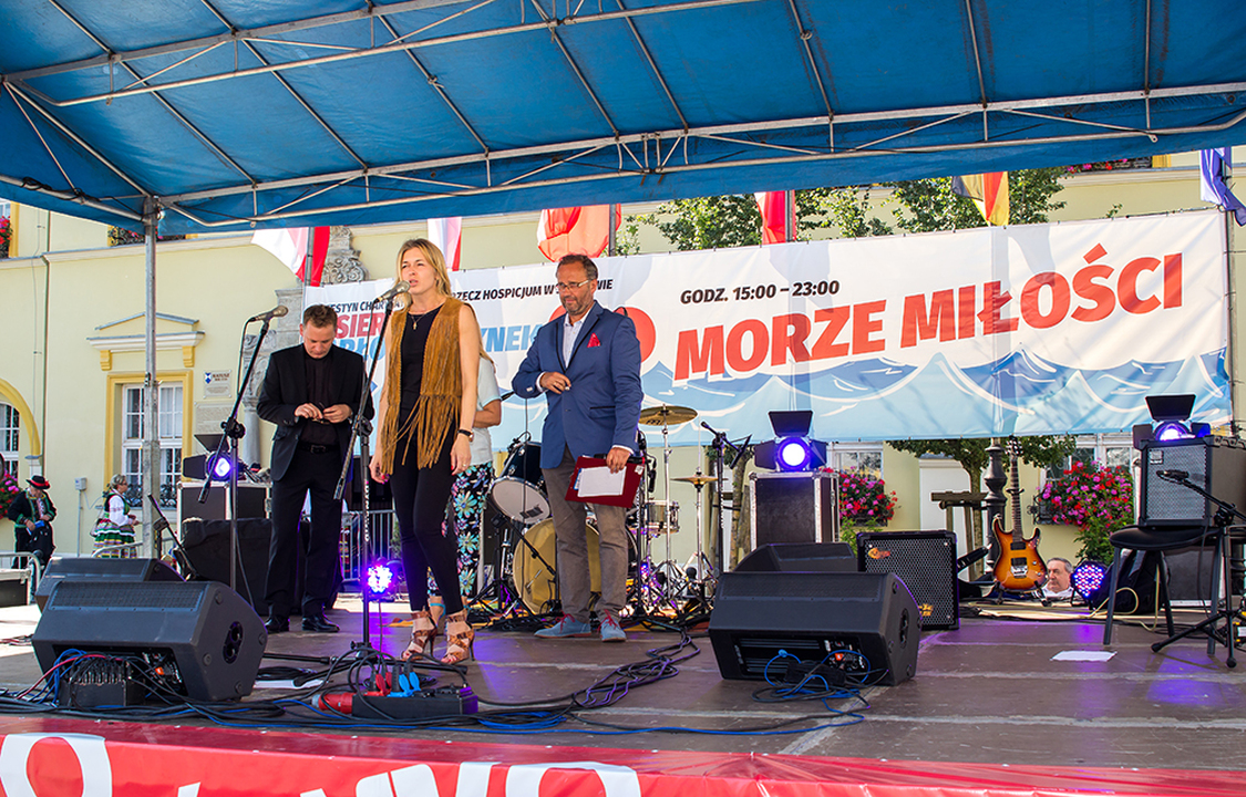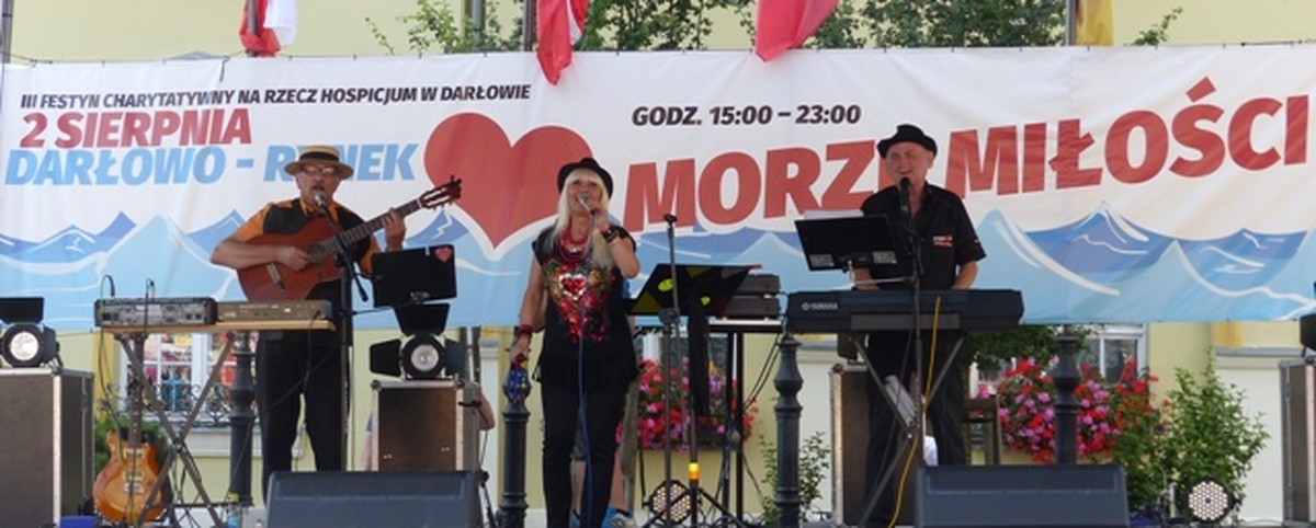 Patronat honorowy nad III Charytatywnym Festynem pod nazwą „Morze Miłości" objęli: Biskup Diecezji Koszalińsko-Kołobrzeskiej Edward Dajczak, dyrektor Caritas ks. Tomasz Roda oraz starosta sławieński Wojciech Wiśniowski i burmistrz Darłowa Arkadiusz Klimowicz. Organizatorami festynu byli Joanna Klimowicz, ks. Krzysztof Sendecki i Danuta Woźniak. Wspierali organizację festynu: miasto Darłowo, Radni RM, DOK im. L. Tyrmanda i 85 sponsorów, którzy fundowali nagrody na loterię, licytację i prowadzili stoiska. Występy na scenie przed ratuszem rozpoczęły młode miejscowe talenty wokalne. Festyn otworzyli Joanna Klimowicz, Danuta Woźniak i ks. Krzysztof Sendecki, który opowiedział o dniu dzisiejszym w Hospicjum i o jego aktualnych potrzebach.    Koncerty zespołów „Złoty Łan”, „Marianna i Cyganie”, „Amados”, „Haze”, „55” były poprzedzane licytacjami przedmiotów na rzecz hospicjum. Gwiazdami wieczoru byli soliści Teatru Muzycznego z Poznania Agnieszka Wawrzyniak i Bartosz Kuczyk, którzy  w zaczarowany świat operetki i musicalu wprowadzili Darłowian dając koncert pt. „Usta milczą, dusza śpiewa”. Perfekcyjnie prowadził konferansjerkę i licytację Arkadiusz Sip dyrektor DOK-u. W trakcie festynu nikt się nie nudził, a liczne atrakcje miały wielu amatorów. Dzieci korzystały z takich urządzeń jak np.: dmuchane zjeżdżalnie, labirynt, batut - trampolina, karuzela, kiwające zabawki. Wielkim powodzeniem cieszyły się stoiska dla dorosłych z: domowymi ciastami, nalewkami, piwem, grillowaną kiełbasą, chlebem ze smalcem i ogórkiem. Zarówno dorośli jak i dzieci wykupili wszystkie loteryjne losy. Podczas festynu Radni Rady Miejskiej przeprowadzili kwestę do puszek, z której dochód przeznaczony zostanie na potrzeby hospicjum. Wiele emocji tradycyjnie wywołała  aukcja przedmiotów pozyskanych od Sponsorów. Licytowano m.in.: świecę os Prezydenta RP. Największą kwotę 700 zł wylicytowano za wielkiego misia, którego podarował Arkadiusz, Klimowicz – burmistrz Darłowa. W loterii fantowej wszystkie losy były pełne, a nagrodami było wiele cennych przedmiotów Główną nagrodę telewizor wgrała Alicja Balcerzak.                             W tym roku szerzej włączyły się do festynu samorządy z naszego powiatu fundując nagrody. I tak UG Darłowo i UG Postomino ufundowały po rowerze, UG Malechowo – kuchenkę mikrofalową, UG Sławno robot kuchenny Bosch. Telewizor ufundowało MPGK Darłowo, rower Villa Makro, grill elektryczny – Jasmin.. Poza tym sponsorzy ufundowali 3 komplety pościeli, vouchery na obiady w Gościńcu Zamkowym, 2 rejsy tramwajem wodnym do 4 osób, plecak i dres Orlik”, 3 karnety na basen w hotelu „Delfin”, komplet noży – Centrum AGD i RTV, bon o wartości 100zł do wykorzystania w gabinecie kosmetycznym Uroda. Rzeczy na licytację przekazali: miś- burmistrz Darłowa, sękacz, obrazy – Księgarnia Hit, kosz z przyprawami – „Drobdar”, kosz z owocami – D i M Trocha, nalewka, ogórki Ti J. Koczan, Bukiet z tulipanów – Maja Trybus z Krakowa, statuetka Rybaka- DARLOT, miód- Drogeria Natura, świeca od Prezydenta RP Bronisława Komorowskiego.                                  Swoje stoiska na rynku prowadzili: z ciastem, kawa, herbatą i lemoniadą Związek Emerytów i Rencistów i jeszcze osobno kiełbasą myśliwską, zupami i z loteria fantową, z piwem- J. Karliński i A. Głębocki, gospodarstwo agroturystyczne „Zagroda” z Cisowa, stoisko pielęgniarek –Ewa i Marzena, chleb ze smalcem i ogórkiem- Danuta Puczyńska, barszczyk z pierogami (od D. Kosa)– Związek Emerytów i Rencistów, miody, nalewki, lampiony, wata cukrowa i popcorn – wszystko komercyjnie, Motocross, namiot dla dzieci – DLGR, malowanie twarzy, samochody Straży Pożarnej.                                                    Darłowianie, a także turyści nie żałowali grosza.   Komisyjne przeliczenie zostanie dokonane dziś wieczorem, o czym poinformujemy osobno. Organizatorzy serdecznie dziękują wszystkim wokalistom i zespołom, które wystąpiły charytatywnie. Równocześnie dziękują osobom zaangażowanym w przygotowanie i obsługę stoisk