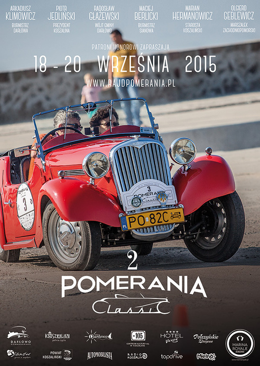 Trasa Rajdu: Rajd Pomerania Classic rozegrany zostanie w dniach 18-20 września 2015 roku. To trzy etapy podzielone na cztery sekcje. Na trasie znalazły się miejscowości: Koszalin, Biesiekierz, Mielno. Darłowo, Darłówko, Dąbki, Sianów.