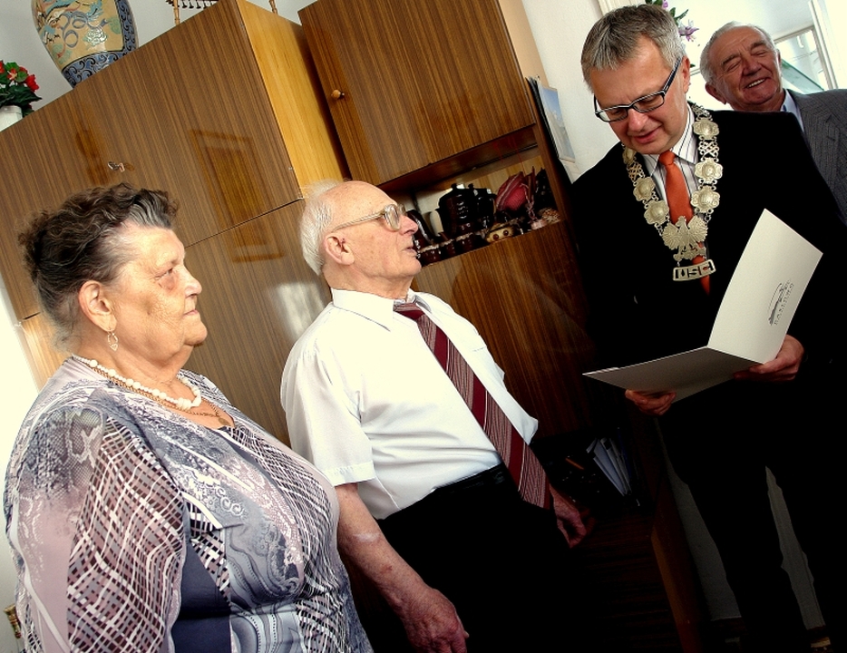 We wtorek 29 września Teodozja i Aleksander Gabrielowie obchodzili wyjątkową rocznicę ślubu. Były to „Kamienne gody”, czyli siedemdziesiąta rocznica zawarcia związku małżeńskiego. Na jubileuszowe uroczystości przybyła najbliższa rodzina, a jeden z synów mieszkający w Australii nadesłał kosz kwiatów. Z okazji tych wyjątkowych godów burmistrz miasta - Arkadiusz Klimowicz razem z kierownikiem Urzędu Stanu Cywilnego w Darłowie złożyli jubilatom wizytę wręczając kwiaty i okolicznościowy dyplom gratulacyjny. Jubileusz siedemdziesięciolecia małżeństwa jest datą niezwykłą. Nie każdemu, kto przysięgał miłość, wierność i uczciwość małżeńską, Opatrzność daje jej doczekać, a już szczególnie w czasach dzisiejszych. Jubilatom życzono dużo zdrowia, brylantowych godów i sto lat. Pani Teodozja tryska energią i nie narzeka na los. Gotuje pyszne potrawy jak np. pierogi, pyzy, kołduny, piecze smaczne ciasta. W dobrej kondycji pomagają ich utrzymać kupowane od znajomego rolnika: mleko, sery, śmietana, masło, jajka.