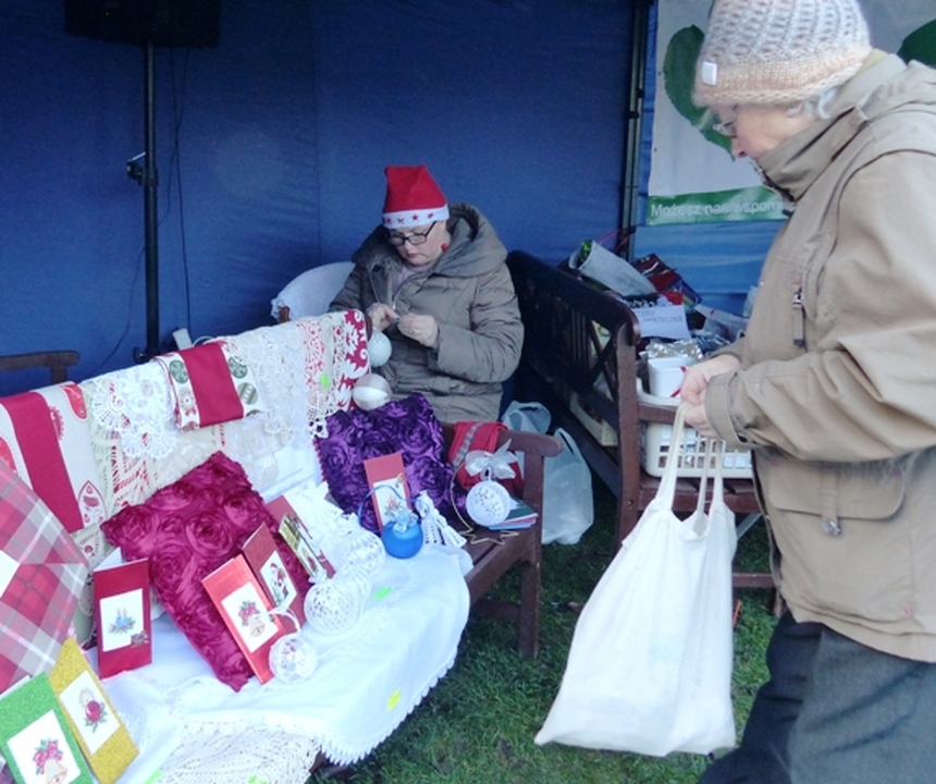 Na stoiskach pyszniły się ręcznie robione ozdoby świąteczne, artystyczna biżuteria, pachnące herbaty z różnych stron świata słodkości, grzane wino, bombki, świeczki, wieńce adwentowe i inne. Na miejscu można było zakupić choinkę. Było, w czym wybierać zaczynając od suszonych i marynowanych grzybów, naturalnych ziół i przypraw po domowe przetwory, soki i powidła. Dla dzieci zorganizowano loterię fantową i przejażdżki na kucyku lub koniu.