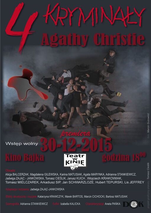 Na deskach tutejszego Kina Bajka (ul. Morska 56), 30 grudnia br., zostanie przedstawiona premiera teatralna pt.: „4 kryminały Agathy Christie". Rozpocznie się ona o godzinie 18:00. Obsada stuprocentowo darłowska! Wstęp wolny - ilość miejsc ograniczona.