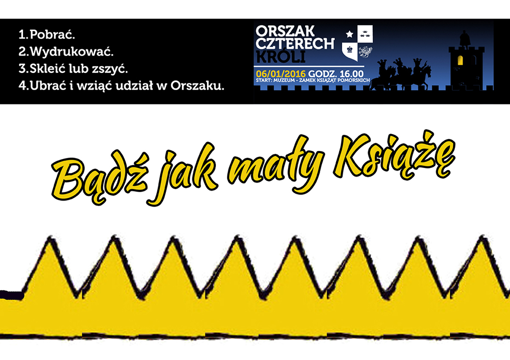 Święto Trzech Króli to święto wyjątkowe. Nie tylko z uwagi na fakt możliwości podkreślenia naszego królewskiego rodowodu i postaci Króla Eryka ale również ze względu na to, że to święto angażujące społeczność. Tym bardziej zapraszamy do współudziału i współtworzenia tego wydarzenia. Zaangażujcie wnuki, dzieci, rodziców, dziadków, sąsiadów i przyjaciół. Zróbcie sobie korony i dołączcie do królewskiej sagi. Nie zabraknie Rycerzy, Króla Eryka, Baltazara, Melchiora i Kacpra, darłowskich sportowców, reprezentantów darłowskiej kultury, franciszkanów oraz organizacji pozarządowych działających w Darłowie. Spotykamy się na dziedzińcu o godzinie 15:50 - 6 stycznia 2016 roku (tj. środa).