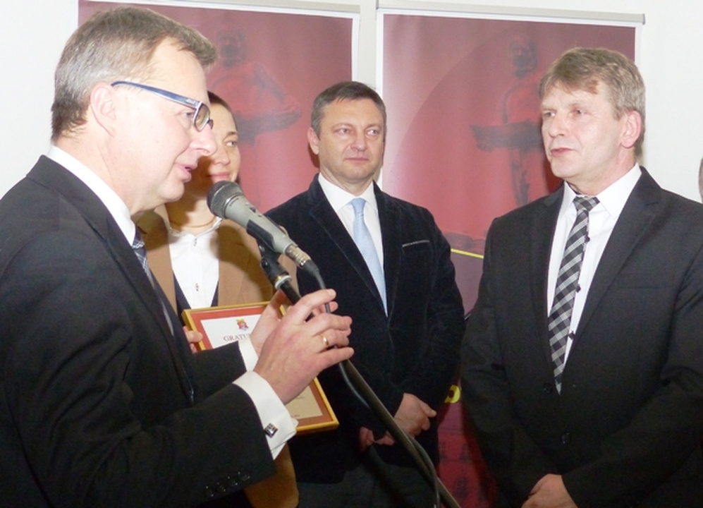 Specjalne Gratulacje wręczył burmistrz Agnieszce i Leszkowi Klin za podjętą inicjatywę stworzenia w Darłowie fabryki domów mobilnych LARK HOME LEISURE. Przedsiębiorcy zapewnili, że fabryka domów mobilnych i szkieletowych ruszy na wiosnę br. oraz, że planują na jej otwarcie zorganizować w Darłowie mecz bokserski Polska – USA.