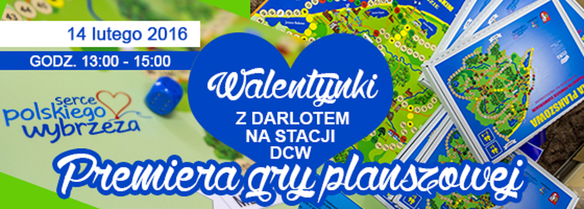 Kiedy? W same Walentynki 14 lutego 2016 roku. Zabierz dziewczynę, chłopaka, sympatię, rodzinę i wpadnij na STACJĘ DCW rozegrać planszową partyjkę, podczas której odkryjesz niejedno ciekawe miejsce naszego powiatu, o którym do tej pory nie miałaś/eś pojęcia. Dziś palcem po planszy - jutro z plecakiem na plecach. Dzień z grą DARLOTU na Stacji DCW. Zapraszamy serdecznie 14 lutego 2016 - tj., niedziela, Dworzec - Stacja DCW - godz. 13:00 - 15:00. Dla zwycięzców - przewidziane nagrody. A na zakończenie weźmiemy udział w finale akcji miejskiej pn.: lubiędarłowo - mocno tak... (15:00 - Rynek Miejski). Zapraszamy zakochanych, kochających, lubiących...