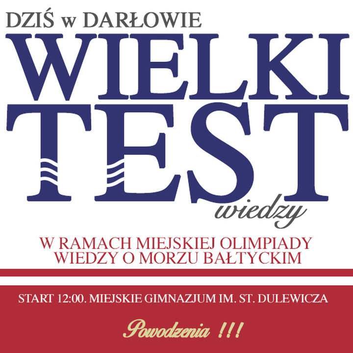 Dziś w samo południe, w siedzibie Miejskiego Gimnazjum im. St. Dulewicza uczniowie darłowskich szkół przystąpią do wielkiego testu wiedzy w ramach organizowanej przez Miasto Darłowo - Miejskiej Olimpiady Wiedzy o Morzu Bałtyckim. Uczniowie przystępujący do testu, zostali wyłonieni w ramach pierwszego - szkolnego etapu Olimpiady. Każdy z nich startuje indywidualnie i walczy o tytuł Olimpijczyka.
