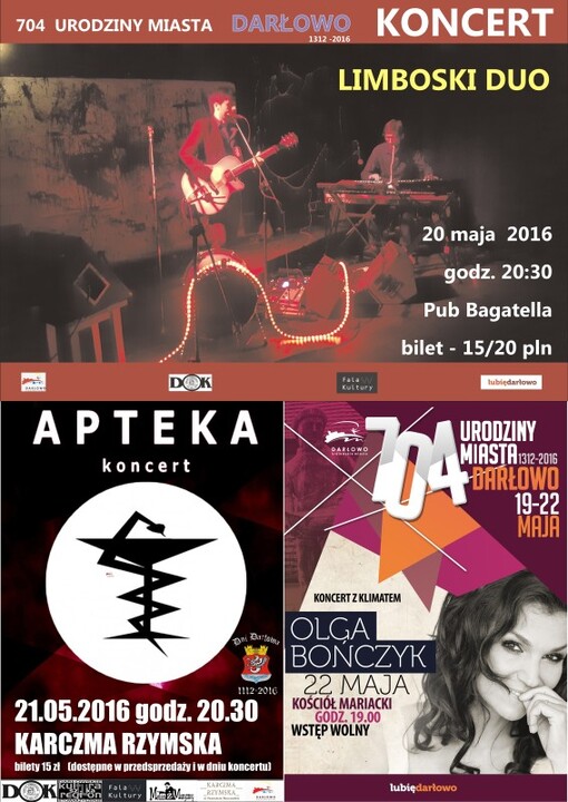 Tegoroczne 704 urodziny Darłowa będą obfitowały w wydarzenia muzyczne, podczas których każdy znajdzie coś dla siebie. Muzyczne Dni Darłowa rozpoczną się już w piątek koncertem duetu Limboskiego, a zakończą w niedzielę recitalem Olgi Bończyk.