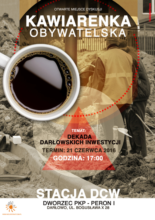 Miasto Darłowo i Darłowskie Centrum Wolontariatu zapraszają do udziału w jutrzejszej, ostatniej już - przed wakacjami 2016 - Kawiarence Obywatelskiej, która odbędzie się w siedzibie DCW w Darłowie przy ul. Bogusława X/28.