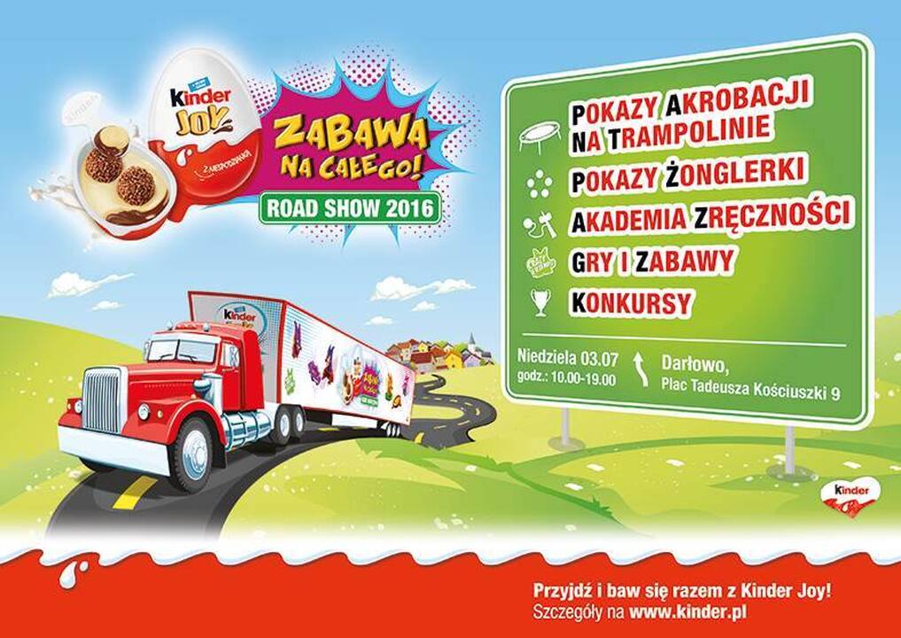 Z kolei w niedzielę na Rynku, w godz. 10:00-19:00 powstanie gigantyczne miasteczko wspaniałej zabawy dla najmłodszych Kinder JOY. Wszystkie atrakcje są całkowicie bezpłatne. Wcześniejsza rejestracja uczestnictwa w imprezie nie jest wymagana.