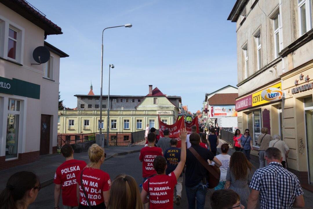 i organizują tam różne, ciekawe przedsięwzięcia. W miniony piątek, 1 lipca w ramach tej inicjatywy odbył się w Darłowie Marsz dla Jezusa i koncert na Placu Tadeusza Kościuszki.  Punktualnie o godzinie 17 w piątek wierni spotkali się przed Darłowskim Ratuszem. Stamtąd rozpoczął się  barwny  i radosny Marsz dla Jezusa. Podczas marszu uczestnicy nieśli transparenty, śpiewali pieśni, dawali świadectwo swojej wiary i radowali się obecnością Jezusa w ich życiu. Po zakończeniu marszu odbył się koncert, również nawiązujący do tematyki chrześcijańskiej. Wędrujących przez Polskę wiernych, bardzo chętnie przyjęło miasto Darłowo. Organizatorem wydarzenia w naszym mieście był Kościół Jezusa Chrystusa w Darłowie. Jako współorganizator tego wydarzenia, które odbyło się w Darłowie po raz pierwszy w takiej formie cieszymy się, że mogliśmy przyjąć ten obóz i błogosławić Darłowo i jego mieszkańców, a także mówić głośno, że nie wstydzimy się naszej wiary - przyznaje pastor Kościoła Zielonoświątkowego w Darłowie, Tomasz Pogorzelski. W czasach, kiedy coraz więcej młodych ludzi oddala się od wiary  i w ogóle zasad chrześcijańskich na jakich zbudowane jest nasze społeczeństwo i  cała ludzka egzystencja, takie inicjatywy mają na celu przypominanie, a także zachęcenie do tego, by wiara odgrywała większą rolę w naszym życiu.                                                                               W piątkowym spotkaniu wzięło udział kilkadziesiąt osób. Zarówno marsz przez darłowskie osiedla i deptak, jak i koncert na Placu Tadeusza Kościuszki oraz modlitwa o uzdrowienie, miały bardzo pozytywny odbiór wśród mieszkańców. Przez wakacje uczestnicy obozu misyjnego zamierzają przemierzyć całą Polskę, my zostajemy w Darłowie i chcemy w dalszym ciągu służyć mieszkańcom Darłowa przede wszystkim modlitwą, ale również w praktyczny sposób nieść Bożą miłość – mówi pastor Kościoła Jezusa Chrystusa w Darłowie, Tomasz Pogorzelski.