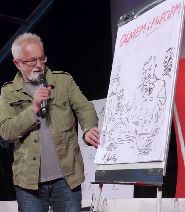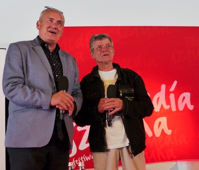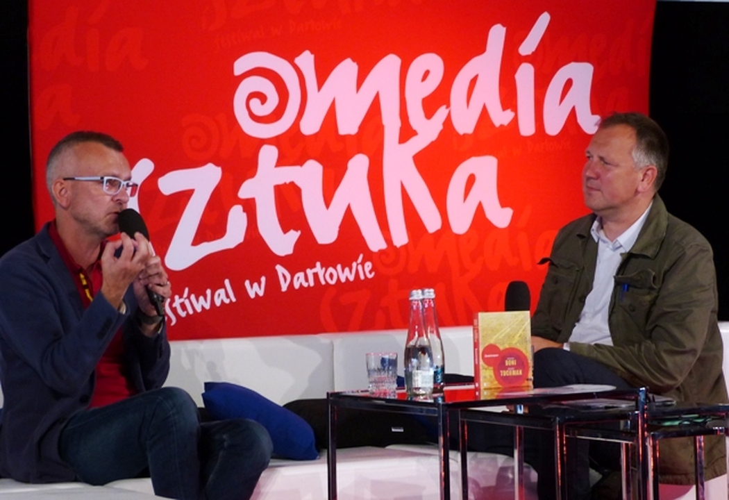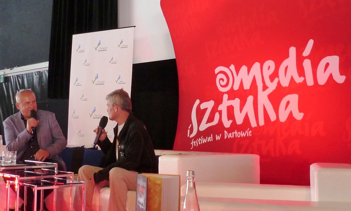 Słynny Edi z dramatu Piotra Trzaskalskiego od razu zjednał sobie publiczność, która z okazji ukończenia przez niego w czerwcu br. 60 lat hucznie odśpiewała mu sto lat. Henryk Julian Gołębiewski wychował się i mieszka na warszawskim Mokotowie. Popularny Heniek jest przedstawicielem grupy tzw. naturszczyków, czyli aktorów na ogół bez wykształcenia aktorskiego, grających „siebie samych”. Dla filmu został odkryty przez Janusza Nastfetera. Wystąpił wówczas w filmie „Abel twój brat”. Następnie był regularnie zatrudniany w obsadzie dziecięcej przez Stanisława Jędrykę do seriali przygodowych dla młodzieży, takich jak: Wakacje z duchami, Podróż za jeden uśmiech i Stawiam na Tolka Banana. Miał trudne okresy w życiu, był bezrobotnym i niestroniącym od alkoholu. Otrzymywał liczne Nagrody za role filmowe i teledyski. Gość festiwalu Media i Sztuka, który przyjechał do Darłówka z Wrocławia przyznał, że aktorstwo filmowe w jego życiu to przypadek. Kiedy nie gram, aby zarobić podwijam rękawy i idę pracować do budowlanki, aby utrzymać żonę Marzenę i córkę Różę. W festiwalowej księgarni można kupić książkę pt. „Zygzakiem przez życie” napisaną przez Tomasza Solarewicza, w której Henryk Gołębiewski bez owijania w bawełnę szczerze opisuje czasem bardzo trudne i pełne przygód swoje barwne życie. Drugie spotkanie z mistrzem reportażu Wojciechem Tochmanem poprowadził autor kilku książek i dziennikarz Cezary Łazarewicz. W roku 1990 do Gazety Wyborczej przyjęła go Hanna Krall. Przez 6 lat Od prowadził w TVP1 program poświęcony osobom zaginionym „Ktokolwiek widział, ktokolwiek wie”. W 1999 r. założył Fundację Itaka poszukującą zaginionych i pomagającą ich rodzinom. W roku akademickim 2006/2007 wykładał w Instytucie Dziennikarstwa Uniwersytetu Warszawskiego. Jest pomysłodawcą Klubu HEBAN i koordynatorem jego działań. Fundacja udziela pomocy dzieciom we wsi Nyakinama w Rwandzie. W 2009 r. założył w Warszawie wraz z Pawłem Goźlińskim i Mariuszem Szczygłem Instytut Reportażu, gdzie wykłada w Polskiej Szkole Reportażu oraz angażuje się w działalność Faktycznego Domu Kultury i kluboksięgarni „Wrzenie Świata” w Warszawie. Za swoje mistrzowskie reportaże tłumaczone na kilkanaście języków zebrał szereg nagród: Reporter Roku, finalista Nagrody Literackiej Nike, Nagroda Poznańskiego Przeglądu Nowości, Pióro Nadziei – Nagroda Amnesty International i wielu innych. Dalej w hali położonej na plaży w Darłówku wschodnim czytali fragmenty Trylogii Henryka Sienkiewicza, Wojciech Pszoniak i Jerzy Bralczyk. Gdy fenomenalnie czytał Wojciech Pszoniak o Bohunie i kniaziównie Kurcewiczównie to można było sobie wyobrazić wszystkie szczegóły poszczególnych scen niczym w doskonałym filmie. Językoznawca prof. Jerzy Bralczyk większy akcent na sienkiewiczowskie pojedynki, które stały nam przed oczami jak żywe. Wsłuchując się w sienkiewiczowskie opowieści satyryk Henryk Sawka narysował kilka scen uwspółcześniając je politycznie. W wyjątkowym spotkaniu zatytułowanym „Serwus jestem nerwus” poświęconym zmarłej niedawno Marii Czubaszek wypowiadali się: Wojciech Karolak, Artur Andrus, Grzegorz Miecugow, Marek Przybylik, Henryk Sawka Michał Ogórek. Z opowieści bliskich i przyjaciół wyłoniła się wszechstronna pisarka, satyryczka, autorka tekstów przebojowych piosenek, komentatorka „Szkła kontaktowego”, autorka słuchowisk radiowych i jurorka licznych przeglądów kabaretowych. Jej celne satyryczne powiedzonka weszły na stałe do historii rozrywki. Na Festiwalu Media i Sztuka w Darłowie gościła dwukrotnie. Na zakończenie pierwszego dnia festiwalu odbył się koncert muzyki świata z udziałem Michała Augustyniaka vel Limboski.