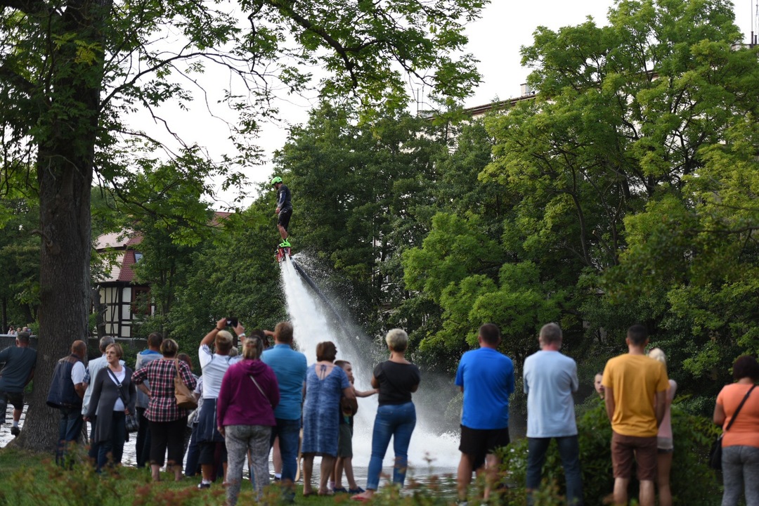 Celem tego festynu było m.in. pokazanie obiektów służących do procesu uzdatniania i rozprowadzania wody oraz oczyszczania ścieków w galerii zdjęć. Systematycznie od kilku lat Spółka miejska inwestuje w wodociągi i w procesy uzdatniania wody pitnej. Niedawno zakończono budowę nowego wodociągu o długości 600 m przy ul. Polnej, a obecnie trwają prace przy budowie kanalizacji sanitarnej w ulicy Księżnej Zofii- mówi kierownik Zakładu Wodociągów i Kanalizacji Wojciech Połczyński - inicjator festynu. Miasto Darłowo się rozbudowuje i wszystkie nowe obiekty potrzebują zarówno dobrej wody jak i odbioru oraz oczyszczenia ścieków. Pracujemy nad Projektem rozbudowy i zwiększenia skuteczności oczyszczania ścieków. Na realizację tej nowej inwestycji o szacunkowym koszcie ok. 27 mln złotych będziemy szukać unijnych środków dodaje szef od czystej zdrowej wody. Imprezę rozpoczął występ Teatru „Władca Lalek”. Przez kilka godzin trwały konkursy z atrakcyjnymi nagrodami w tym plastyczny pod inspirującym hasłem „Woda źródłem życia”. Wielkim powodzeniem ciszyły się tor przeszkód, pokazy strażackie i ratownictwa wodnego oraz gry i zabawy jak np. Zumba Fitness. Rewelacją okazał się pokaz FlyBoard, czyli połączenia latania, skakania i pływania razem. Ukoronowaniem festynu był koncert zespołu De Marco. To było udane „Święto Wody” dzięki zaangażowaniu pracowników wodociągów i kanalizacji. Było Super! Do późnych godzin nocnych bawiono się i delektowano pysznymi ciastami upieczonymi przez pracowników MPGK. Podczas Święta wody na Wyspie Łososiowej zakończył się spływ kajakowy wodami rzeki Wieprzy.