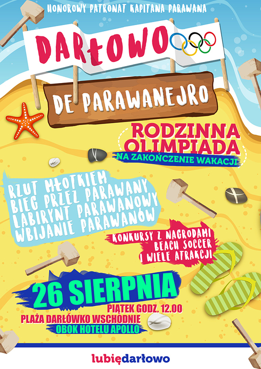 Na zakończenie sezonu letniego 2016 Darłowo zaprasza na wyjątkową Olimpiadę pn.: Darłowo de Parawanejro. Tą letnią, rodzinną olimpiadą polskim parwanom powiemy „good bye". Kiedy? W piątek, 26 sierpnia 2016 roku - w samo południe. Plaża Wschodnia obok Hotelu Apollo.
