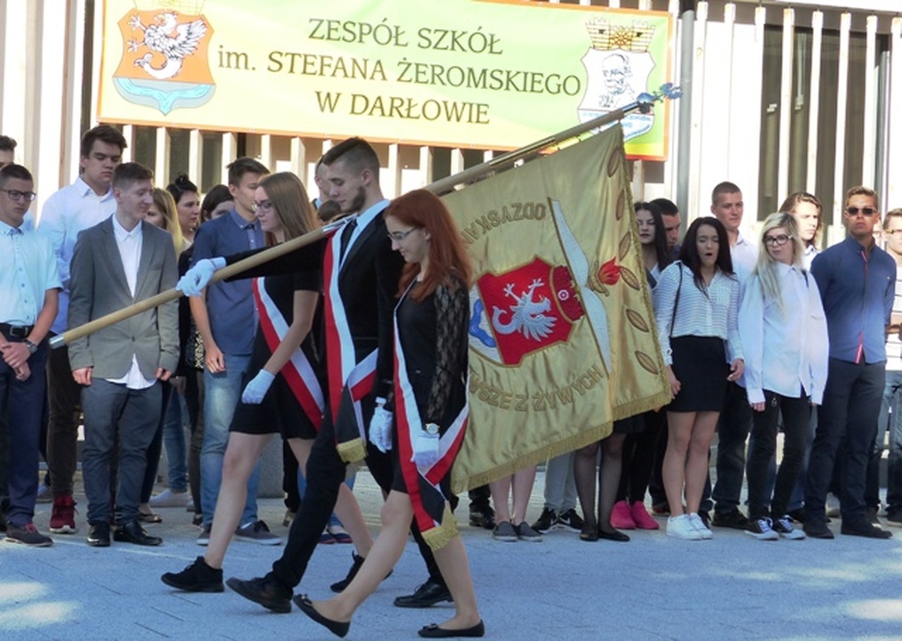 Pogodnego dnia 1 września 2016 młodzież Zespołu Szkół im. Stefana Żeromskiego w Darłowie rozpoczęła nowy rok szkolny 2016/2017.  Towarzyszyli im w tej uroczystej chwili: dyrekcja, nauczyciele, kierownik referatu oświaty w Urzędzie Miejskim dr Zbigniew Mielczarski oraz delegacja nauczycieli akademickich z Politechniki Koszalińskiej.