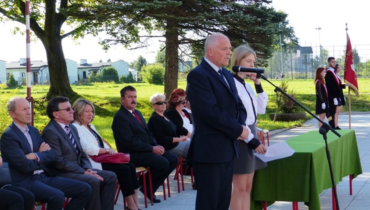 Dyrektor Zespołu Szkól Bogdan Herbeć serdecznie powitał wszystkich przybyłych, a szczególnie tych rozpoczynających naukę w Liceum, Technikum i ZSZ. Życzył młodzieży osiągnięcia założonych celów i dobrej współpracy z gronem pedagogicznym. Wrzesień kojarzy się wszystkim z zakończeniem wakacji, rozpoczęciem roku szkolnego.  Nie zawsze jednak tak było. Nie możemy zapomnieć, co wydarzyło się 1 września 1939 roku, kiedy to Niemcy napadli na Polskę i rozpoczęli II wojnę światową podkreślił w swoim wystąpieniu dyrektor Zespołu Szkół.  Dyrektor dodał, że w dniach 15-16 października 2016 Zespół Szkół im. Stefana Żeromskiego w Darłowie obchodził będzie jubileusz sześćdziesięciolecia szkoły. Z tej okazji zostanie wydana okolicznościowa publikacja.