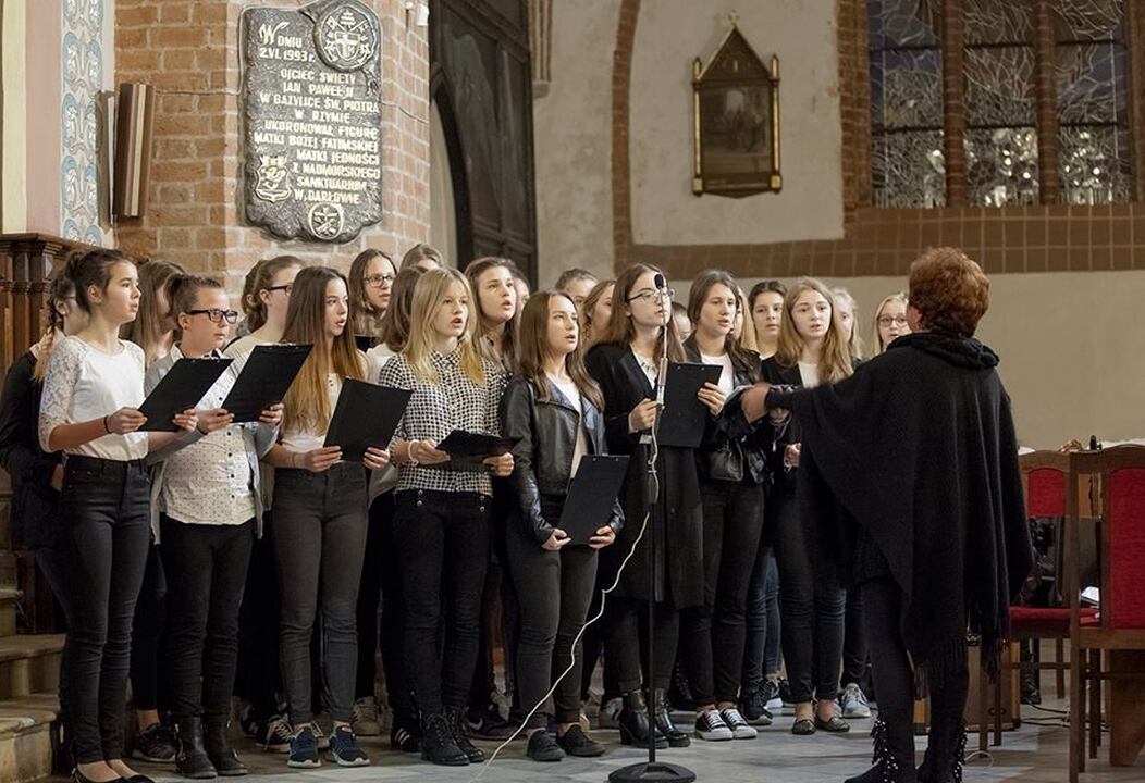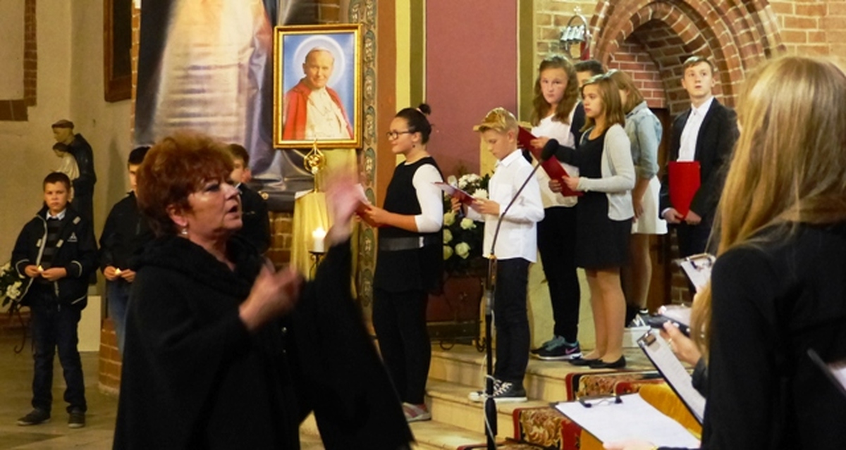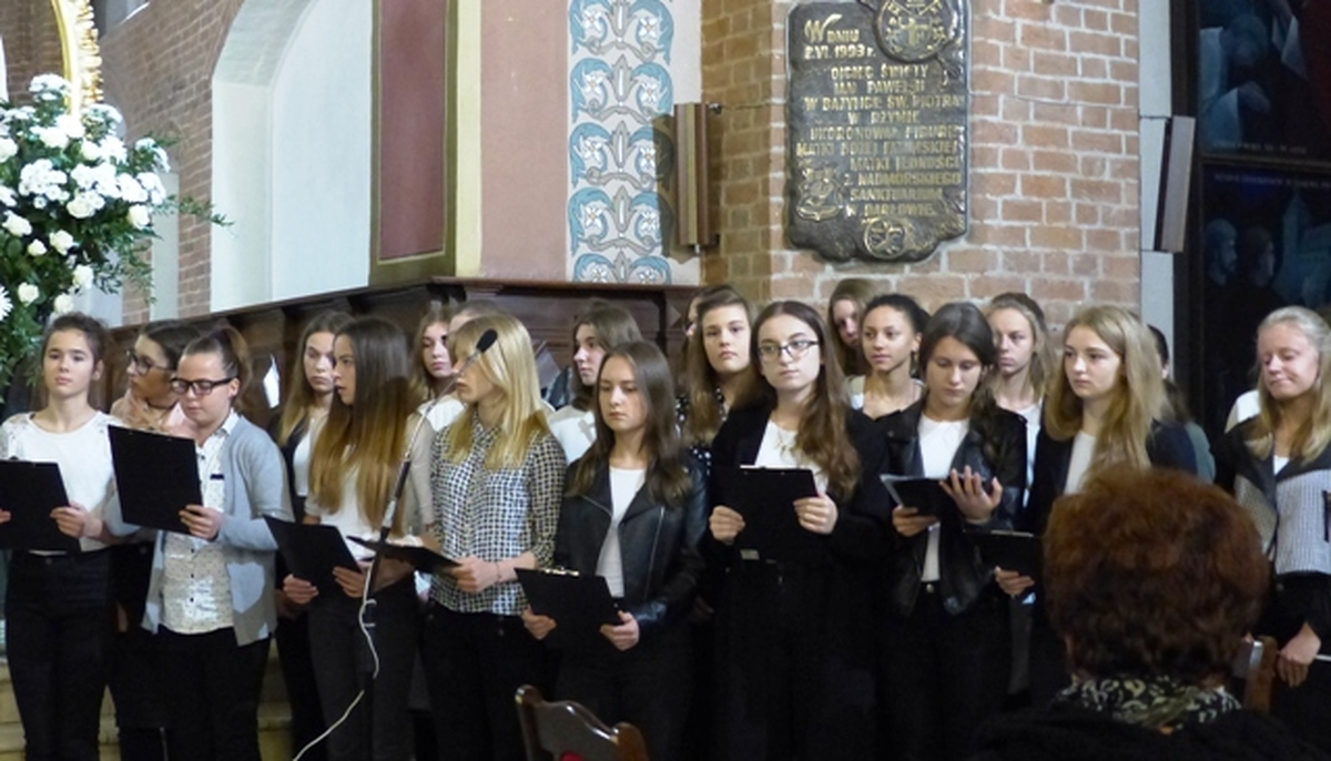 Szesnasty Dzień Papieski w Darłowie był okazją do muzyczno - literackiego wspomnienia o św. Janie Pawle II. Uczniowie Miejskiego Gimnazjum im. S. Dulewicza z klasy 1 c wraz z zespołem wokalno - instrumentalnym "Cantabile" przygotowali refleksyjny występ dla mieszkańców Darłowa, rodziców oraz nauczycieli. Motywem przewodnim był tytuł przedstawienia "Bądźcie świadkami miłosierdzia". Wybrane przez s. Marię Majkowską i Małgorzatę Brzozowską teksty pochodziły z przemówień i kazań papieża oraz były przeplatane wierszami religijnymi. Pieśni i psalmy w wykonaniu zespołu pod kierownictwem Krystyny Leśniewskiej i Artura Hamerlinga wprowadziły słuchaczy w podniosły nastrój. Pamiętajmy, że św. Jan Paweł II lubił młodzież, ich radość i spontaniczność, dlatego też zespół wykonał współczesny utwór „Lolek- Nie ma lepszego od Jana Pawła II-go!”. Zgromadzeni licznie w kościele wierni, dyrekcja i nauczyciele gimnazjum podziękowali młodym wykonawcom gorącymi oklaskami, a ksiądz proboszcz udzielił specjalnego błogosławieństwa relikwiami św. Jana Pawła II.