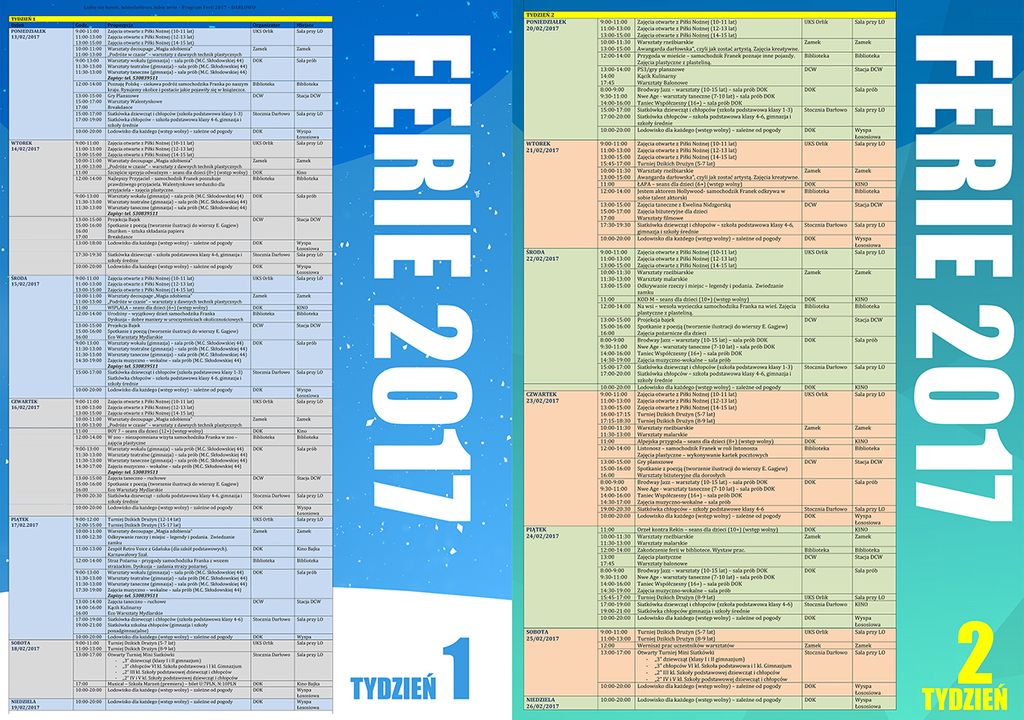 Już tylko trzy dni dzielą nas od ferii zimowych 2017. A czy Wy macie już plany na ten czas? Tym, którzy pozostają w Darłowie lub wybrali Darłowo jako miejsce idealne na zimowy odpoczynek polecamy kalendarz wydarzeń skrojonych idealnie na ten czas. Program do pobrania opublikowaliśmy pod adresem: https://darlowo.pl/userfiles/file/imprezy/ferie2017.pdf