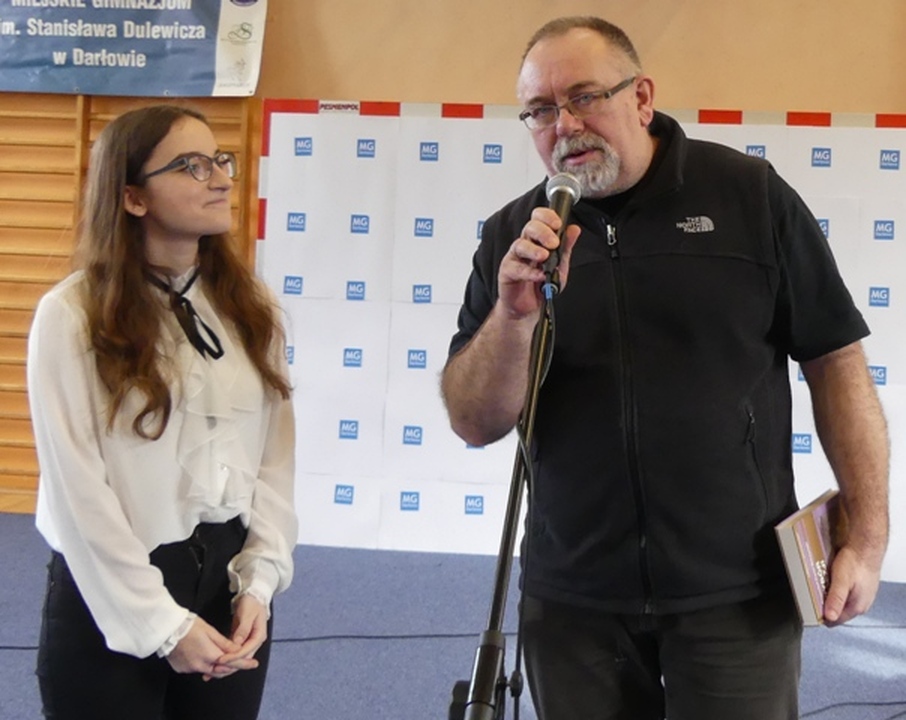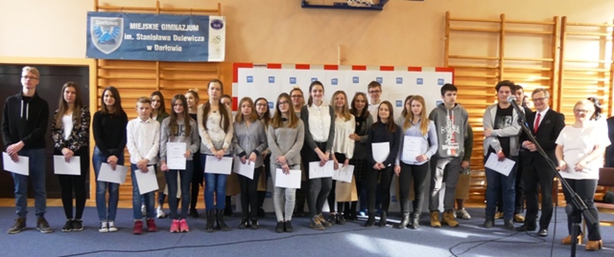 Podczas uroczystego wręczania stypendiów 3 marca w sali gimnastycznej Miejskiego Gimnazjum im. Stanisława Dulewicza przez burmistrza Darłowa Arkadiusza Klimowicza wręczono również nagrody przyznane w  Konkursie Pięknego Czytania oraz w konkursach przedmiotowych.